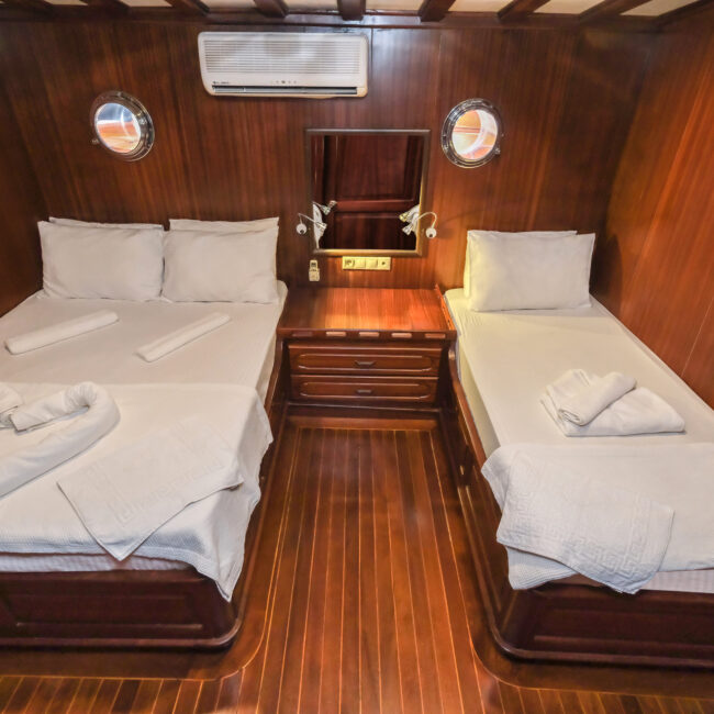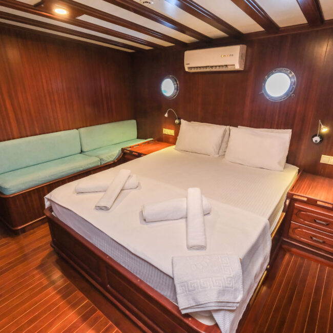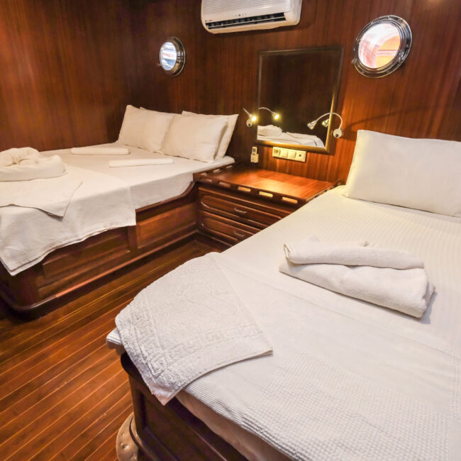 2007 Yılında 36 metre uzunluğunda ve 8 metre genişliğinde inşa edilen Baba Veli 7 Guleti 2011 yılında modern şekilde renovasyona uğrayıp günümüzdeki halini almıştır. 2 Master Kabin, 4 Double Kabin ve 2 Twin Kabin olmak üzere toplam 8 Kabinden oluşmaktadır. Kabinlerimiz geniş, ferah ve modern bir yapıda olup tüm hepsinde TV, Klima, Duş ve Wc mevcuttur.