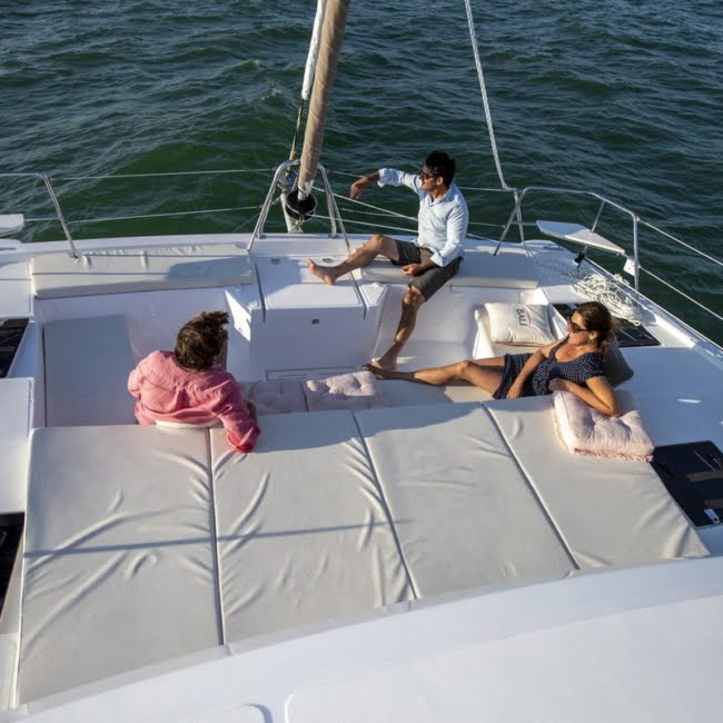 Yelken için verimli olan entegre güverte, oturma yeri ve güneşlenme alanı olan öndeki kokpite, bank koltuklu kıç platformdan çeşitli alanlarda rahatça hareket etmenizi sağlar. Tam konforlu flybridge, muazzam ve güvenli bir dinlenme alanına ve tek veya kısa süreli kullanım için tasarlanmış dümen istasyonuna ev sahipliği yapmaktadır… Catana grubunun ürün yelpazesini bu kadar başarılı kılan performans ve kaliteden bahsetmeye bile gerek yok.