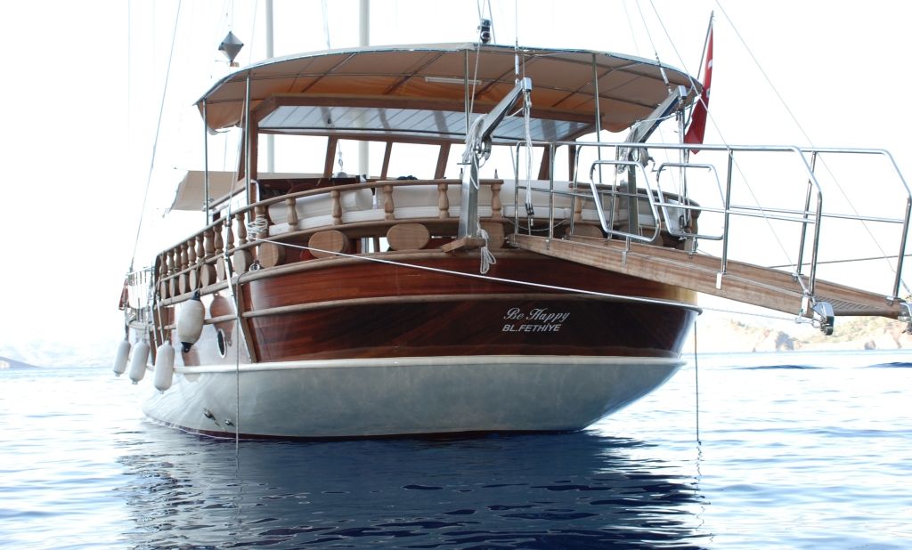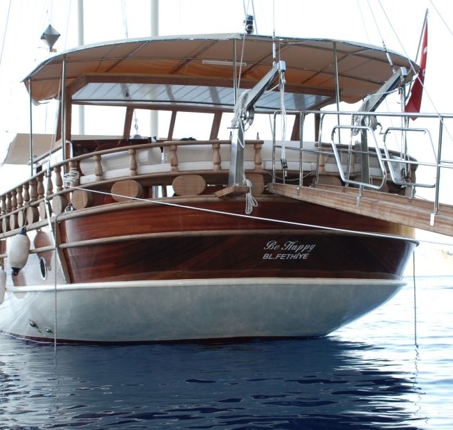 Gulet Be Happy, 1994 yılında 20 metre uzunluğunda ve 4 metre genişliğinde inşa edilmiştir. Her yıl bakımları yapılan teknemiz 2009 yılında baştan sona renovasyona uğrayıp günümüzdeki halini almıştır. 1 Master Kabin ve 3 Double Kabinde 8 misafiri ağırlayabilmektedir. Kabinlerimiz geniş, ferah ve modern bir yapıda olup Klima, Duş ve Wc mevcuttur. Tam donanımlı mutfağımızda özenle hazırlanan yemeklerimizi kıç güvertede veya salonda bulunan şık sofralarımızda tadabilirsiniz. Güvertede geniş minderli oturma alanı, güneşlenme alanı ve güneşlenme minderleri yeterli miktarda mevcuttur. İletişim ve güvenlik açısından beklentilerinizi tam olarak karşılayacak bir yapıya sahiptir. İletişim cihazları, pusula, GPS, seyir cihazları, derinlik ölçer, elektronik harita gibi seçeneklerde teknede bulunanlar arasında yer alır.