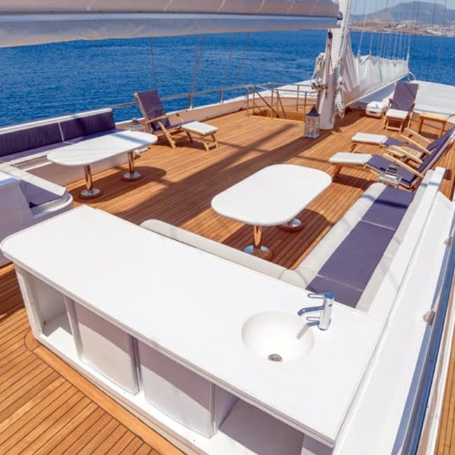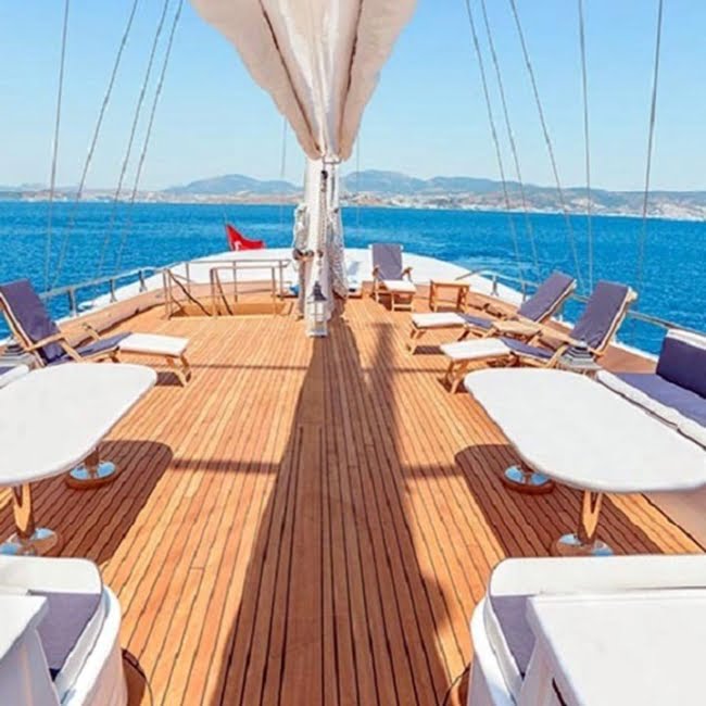 Gulet Bella Mare, 2015 Yılında tekrardan revize edilerek farklı bir forma bürünmüş ve 5 yıldızlı otel konseptinde dizayn edilmiş ve misafirlerimizin tüm lüks ihtiyaclarınıkarşılayabilecek bir özel gulete dönüşmüştür. 1 Kaptan,1 aşçı, 3 gemici, ve 2 hostes mürettebatı ile size lüks bir mavi yolculuk Keyfi yaşacaka olan Bella Mare, Tüm Türkiye kıyıları ve Yunan Adaları rotalarında hizmet vermektedir.Teknemizde tüm su sporları ekipmanları bulunmakla beraber , Jet ski, kano, ringo, banana, su kayağı, paddle board, ve daha birçok ekipman siz misafirlerimize sunulmaktadır.Gulet Bella Mare deneyimli mürettebatı eşsiz donanımı ile Bodrum Marmaris Göcek ve Fethiye koylarında ayrıca Yunan Adalarında gulet Turları yapabilirsiniz. Bella Mare Yat Tekne