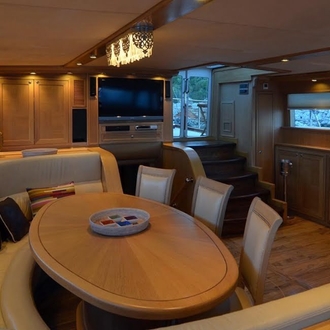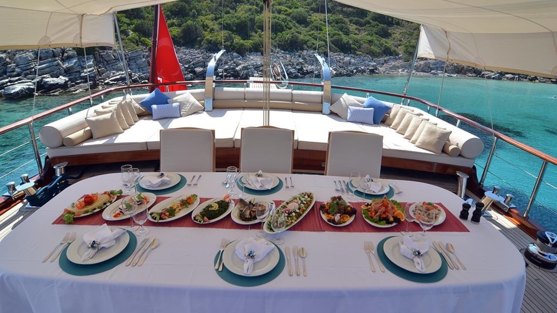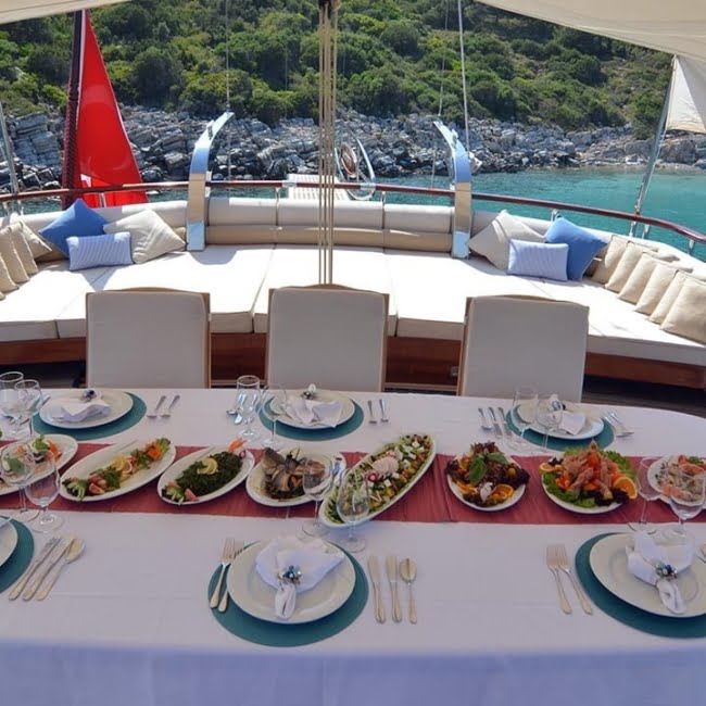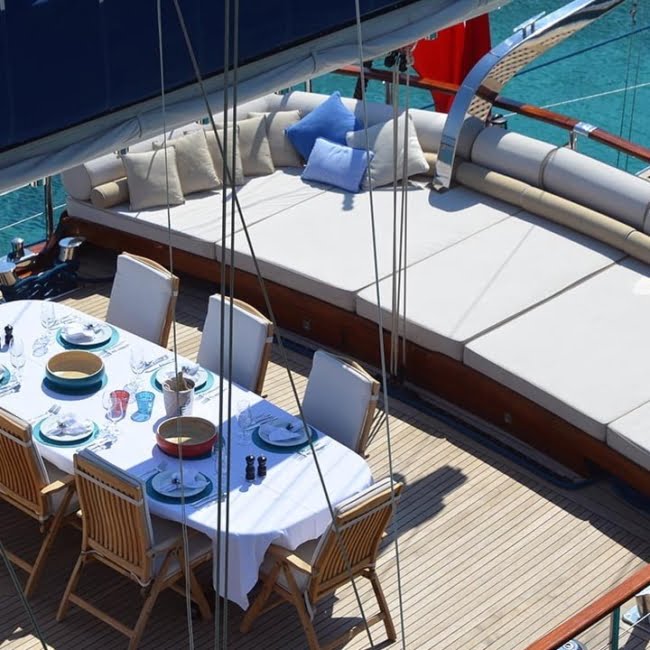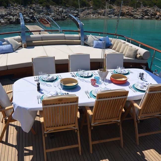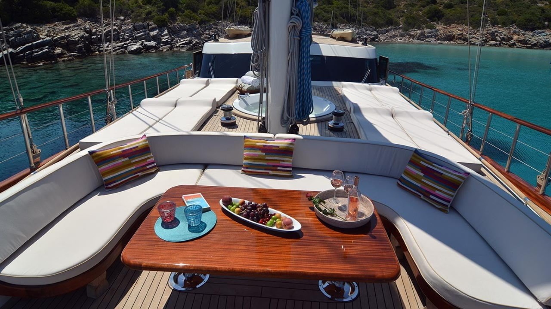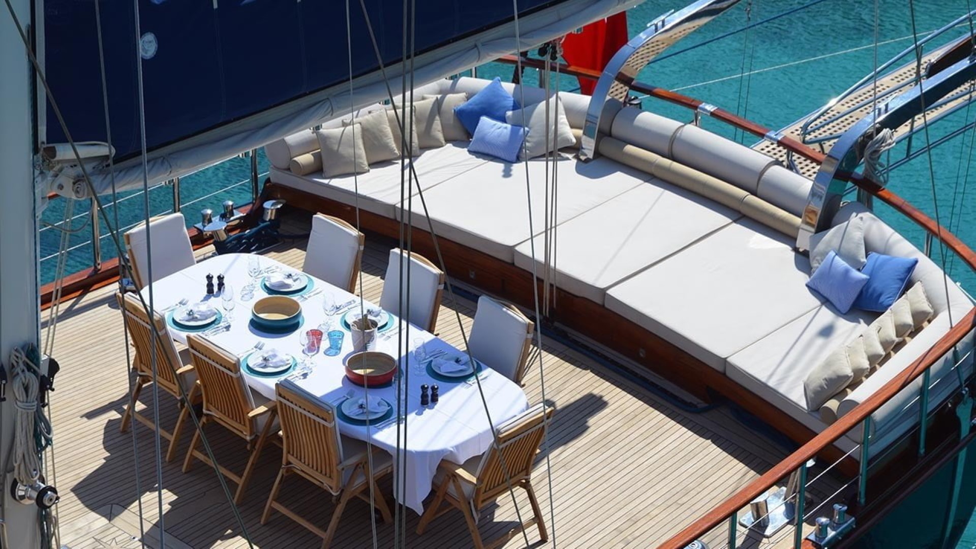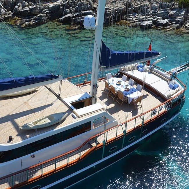 Modern bir zevkle dizayn edilmiş guletimizde yeteri kadar güneşlenme alanı ve şezlong bulunmaktadır.