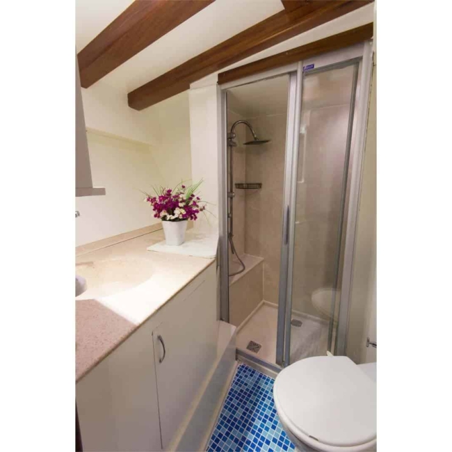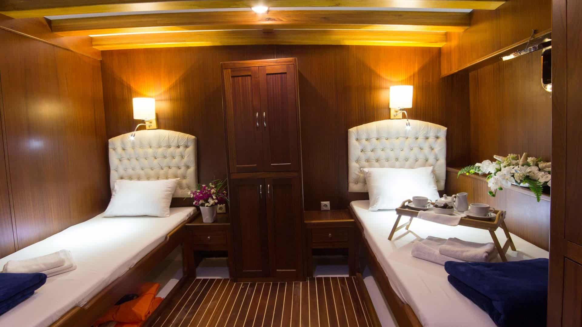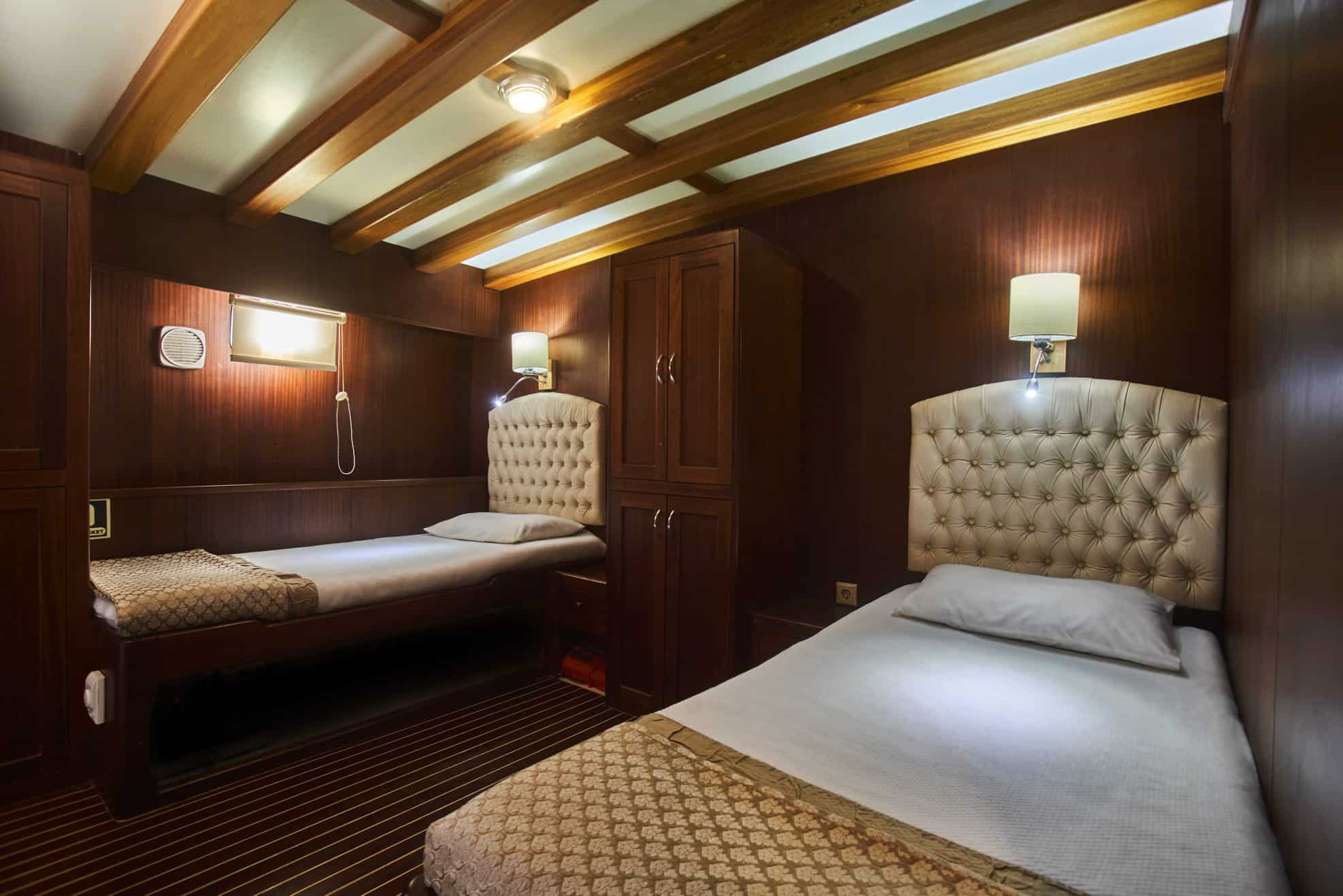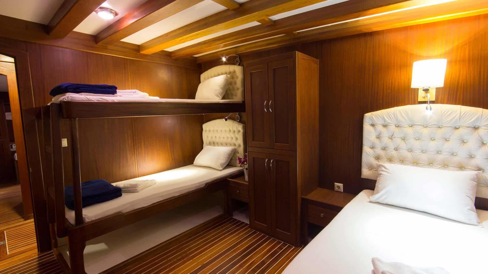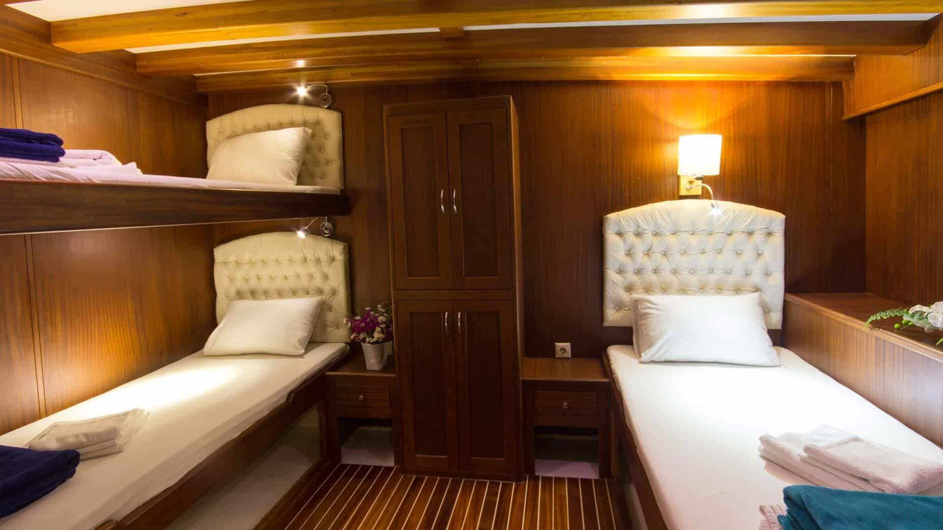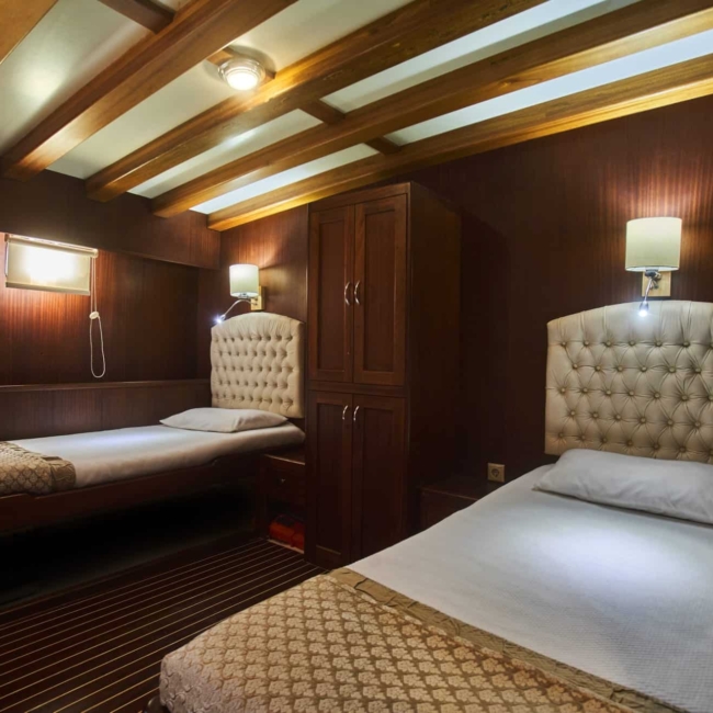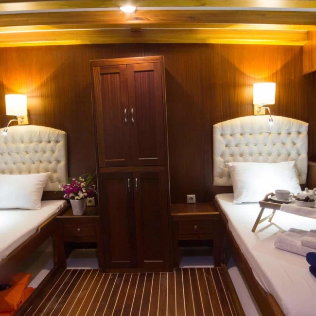 Uzunluğu 43 metre genişliği ise 10 metredir. Konforlu toplamda 10 kabine sahip olup 8 twin kabin, 4 double kabin ve 4 triple kabini bulunmaktadır.