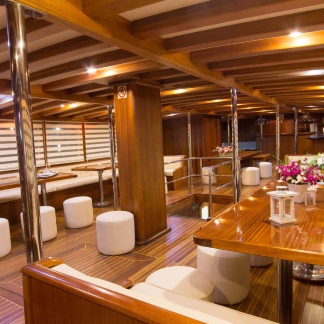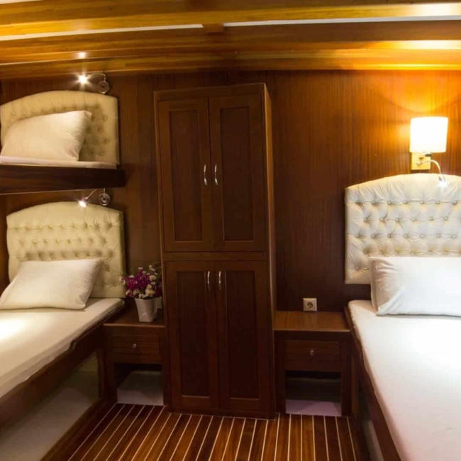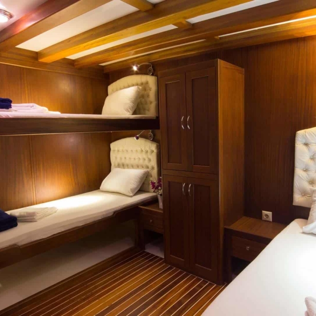 Maksimum konaklama kapasitesi 36 kişidir. Tekne de Zodyak bot ve jetski de mevcuttur.