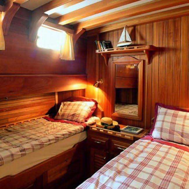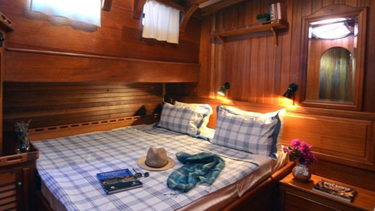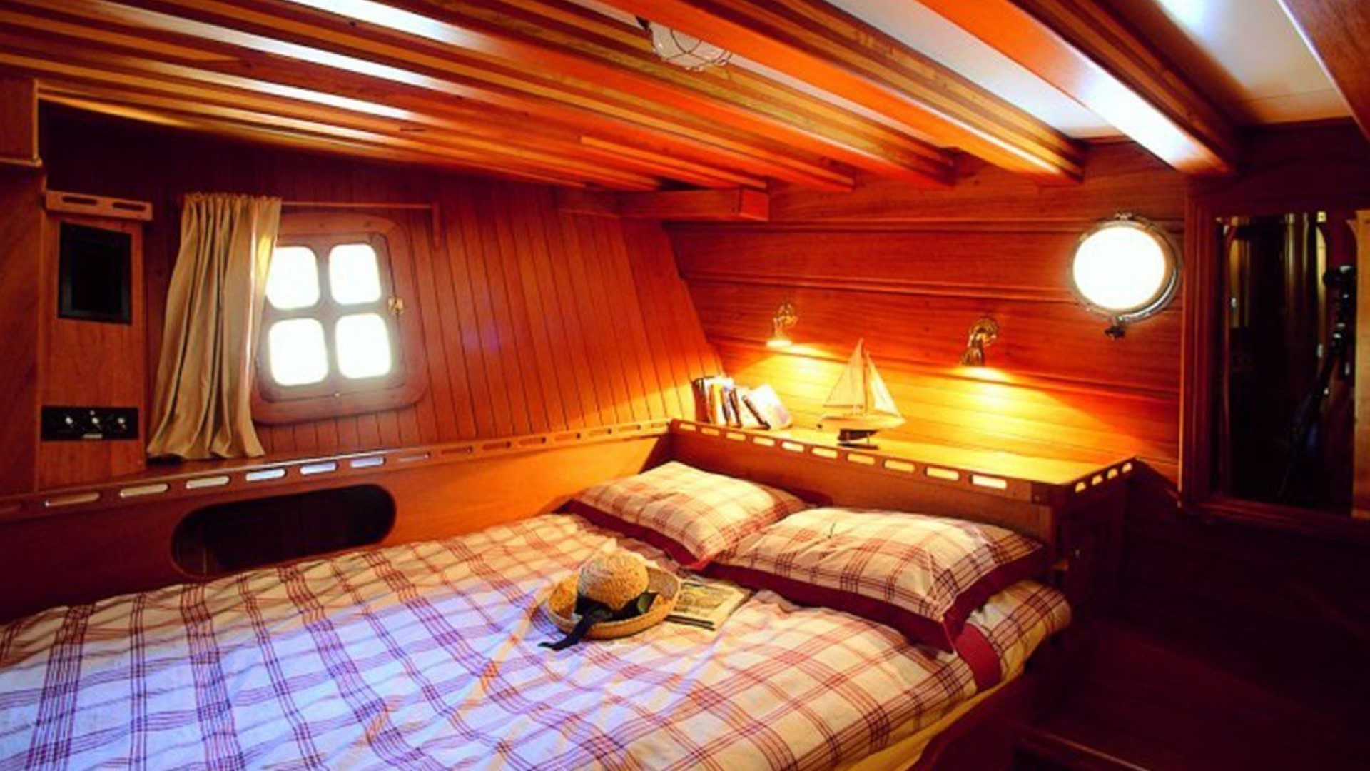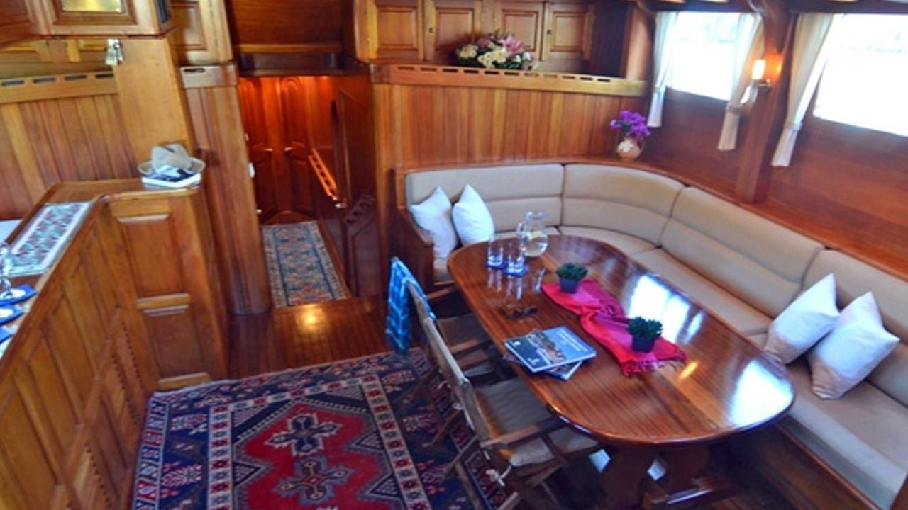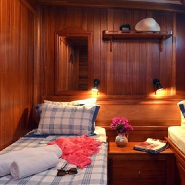2000 yılında 28 m uzunluğunda, 7 m genişliğinde yapılmıştır. Her yıl bakımları yeniden yapılan teknemizin 2 Double Kabin ve 4 Convertible Twins Kabin olmak üzere toplam 6 adet kabinden oluşmaktadır. Misafirlerimizin konforu ve rahatlığı açısından tüm kabinlerimizde Klima, Duş Ünitesi ve Wc mevcuttur. Mürettebatın kendine ait yaşam alanları mevcuttur. Mürettebat, günlük tekne bakımlarını ve servis hazırlıklarını organize edip bitirdikten sonra misafirlerimizin rahatı için kendi kamaralarına geçmektedir.