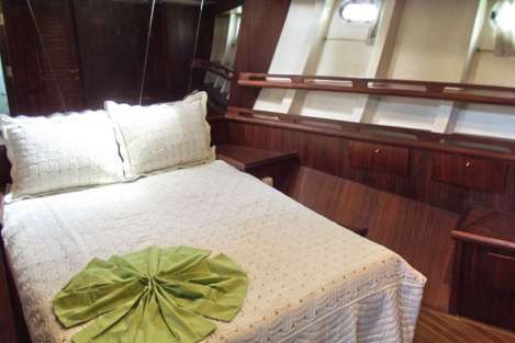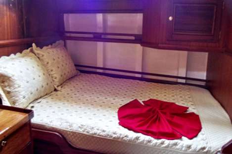 Teknemizde; 2 adet double kabin ve 1 adet master kabin bulunmaktadır. Tüm kabinlerimizde banyo ve klima sistemi mevcuttur. Konforlu, sade ve şık dekorasyona sahip kabinlerimiz, sizin iç huzurunuz düşünülerek tasarlanmıştır.