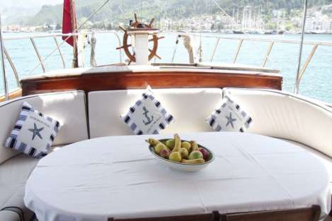 2008 yılında denize inen teknemiz, 2015 yılında revize edilerek sizlerin kullanımına hazır hale getirilmiştir. 2016 yılında ise tümüyle revize edilen teknemiz, muhteşem mavi yolculuk için sizlere en iyi ve en kaliteli hizmeti verebilmek için hazır hale getirilmiş olup, geniş, konforlu, huzurlu yaşam alanlarıyla öne çıkmaktadır. Teknemiz 6 kişiye kadar siz misafirlerimizi konuk edebilir, güler yüzlü, deneyimli ve sizlerin memnuniyetine odaklı 3 kişilik mürettebat ekibiyle kaliteli servis hizmeti sunmaktadır. İnternet erişimi mevcut olan teknemiz, lüks sınıf tekneler kategorisine girmektedir.