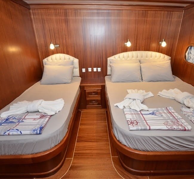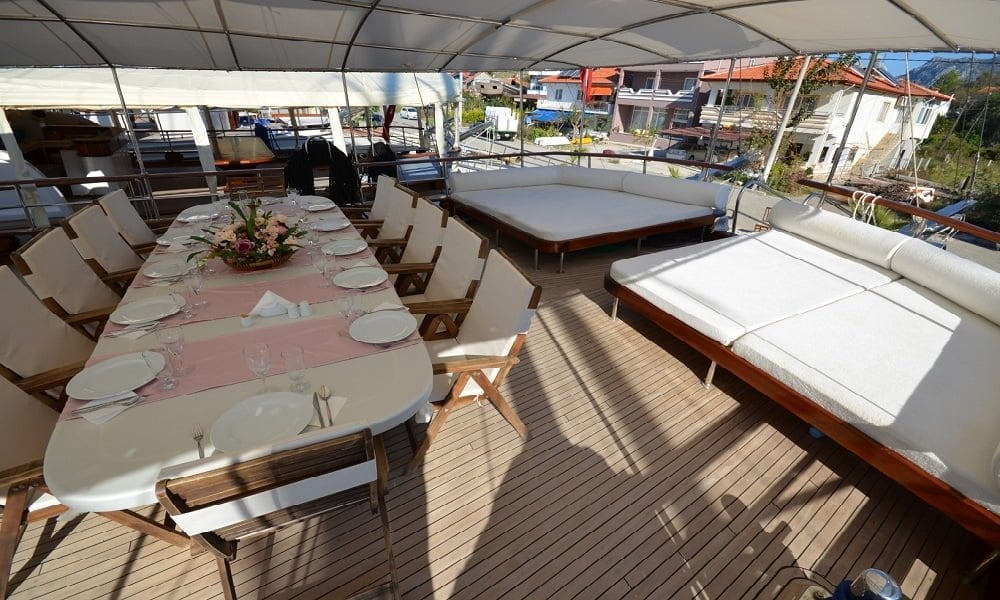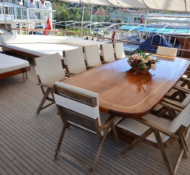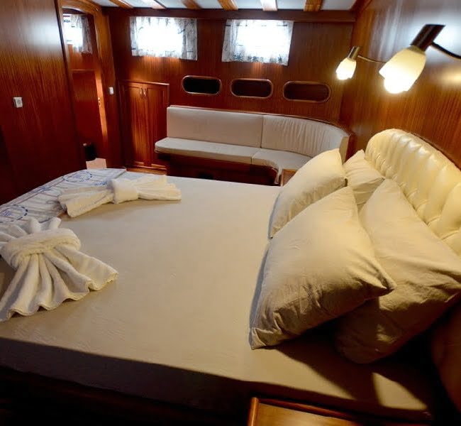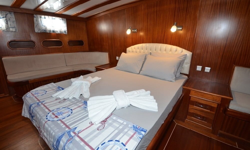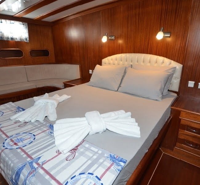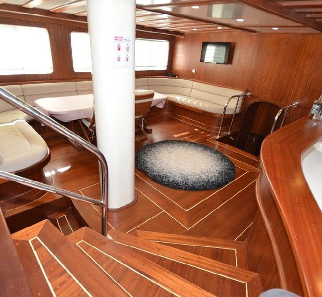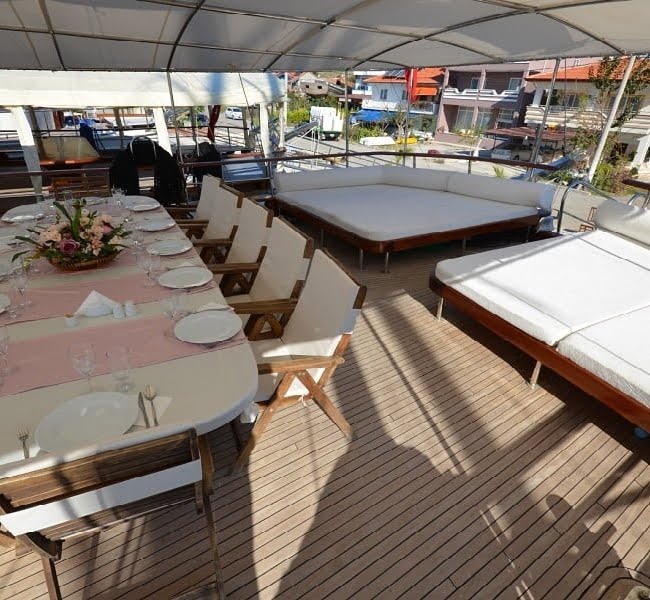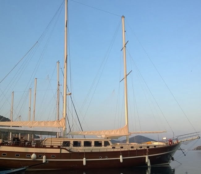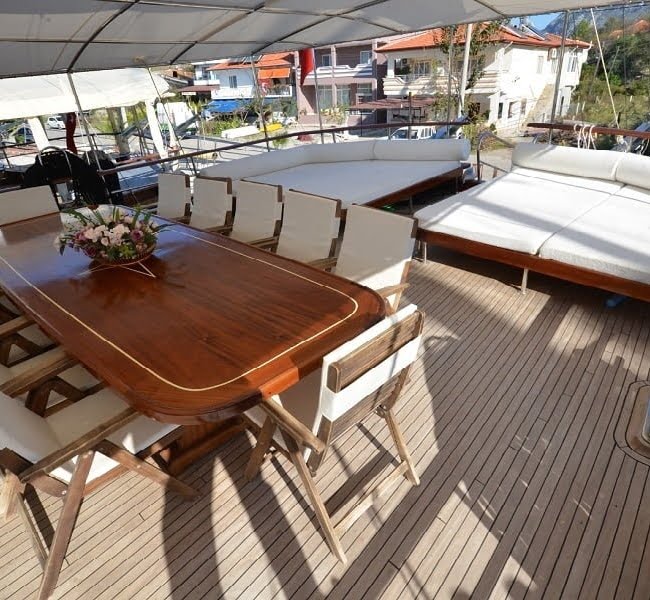 30 mt uzunluğu, 8 mt genişliği ve 2.80 mt derinliğindeki Ketch tipli, ahşap gövdeli teknemiz Marmaris Limanı’nda, Türk bayrağımız dalgalı şekilde yer alır. Alabileceği yolcu sayısı 12 iken, mürettebat sayısı ise 4tür.