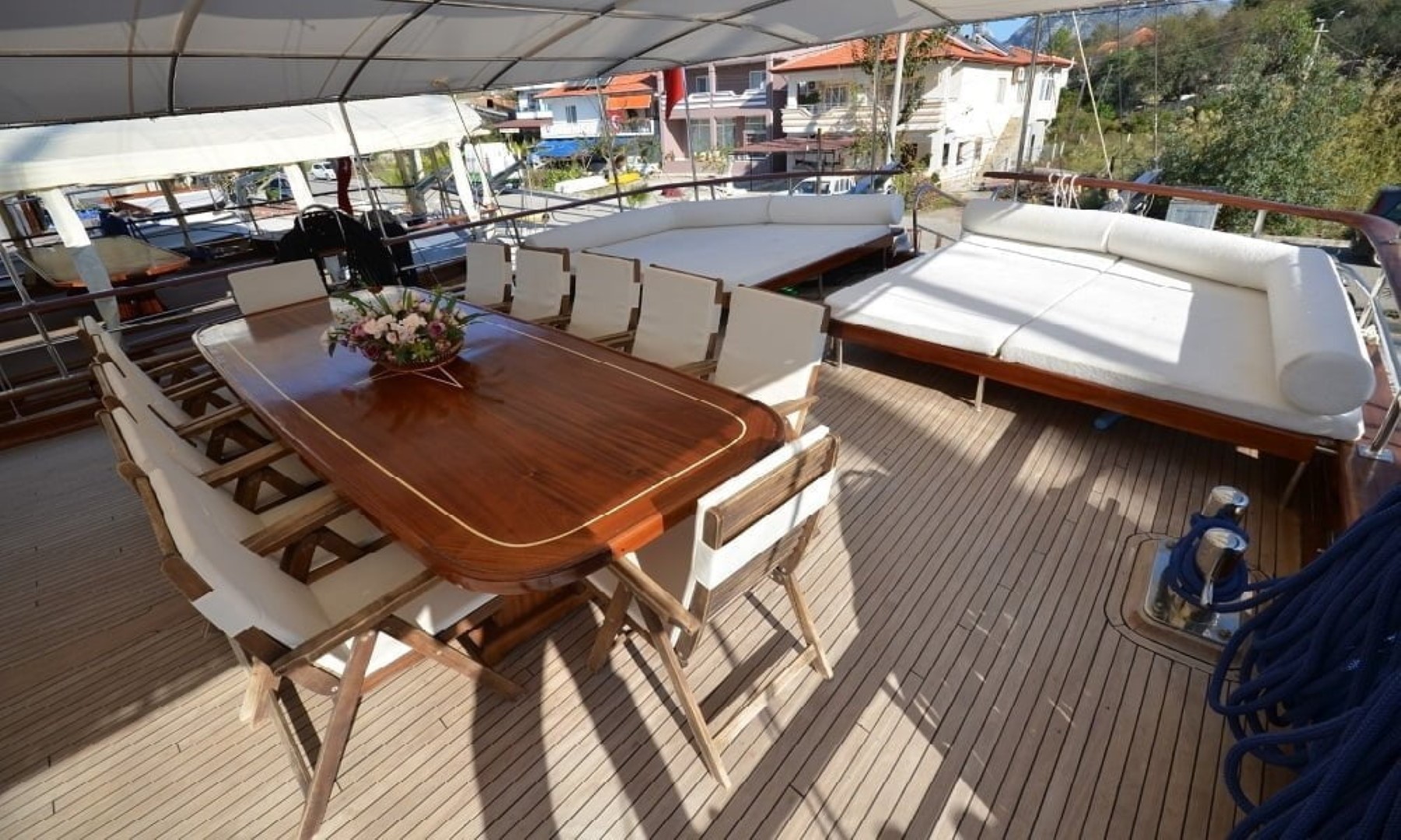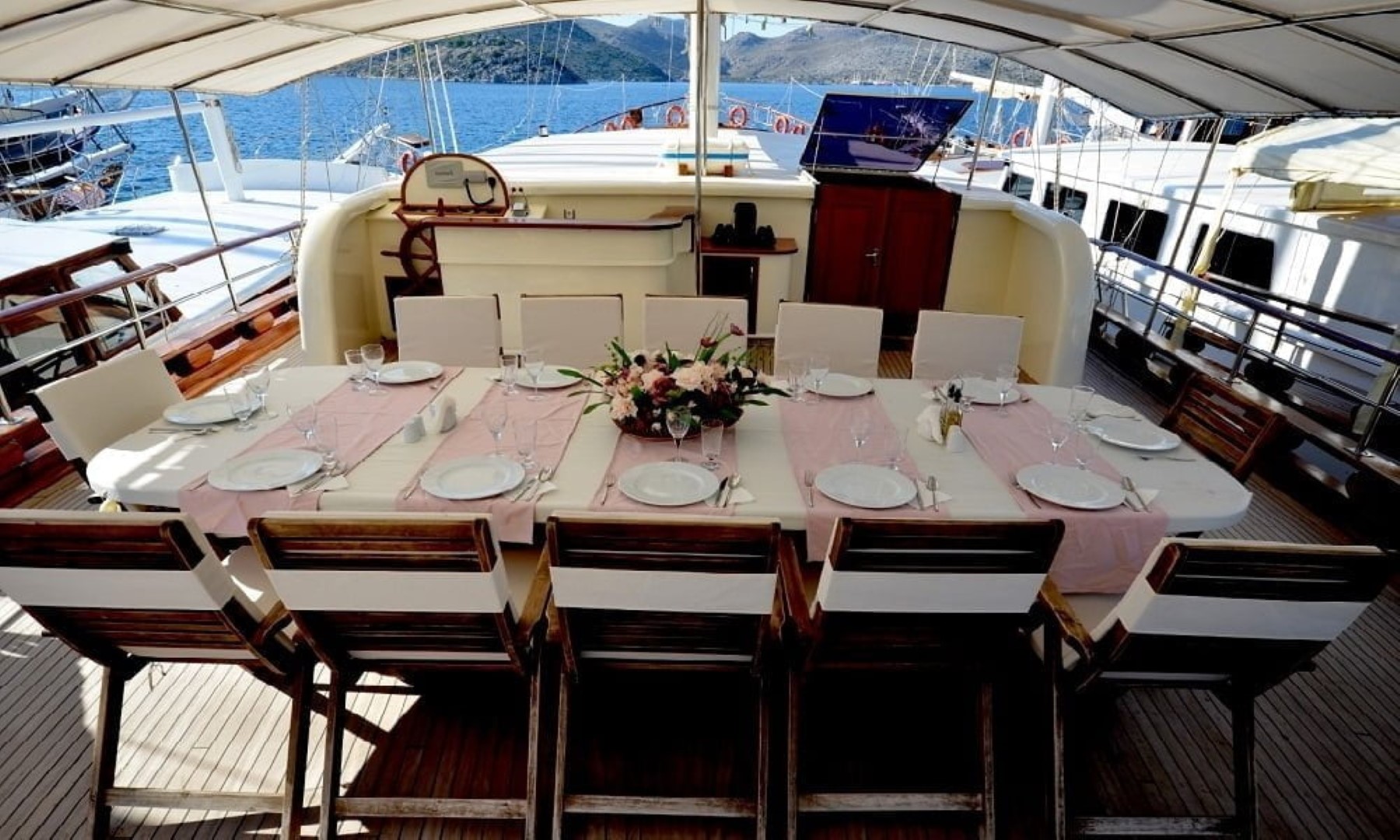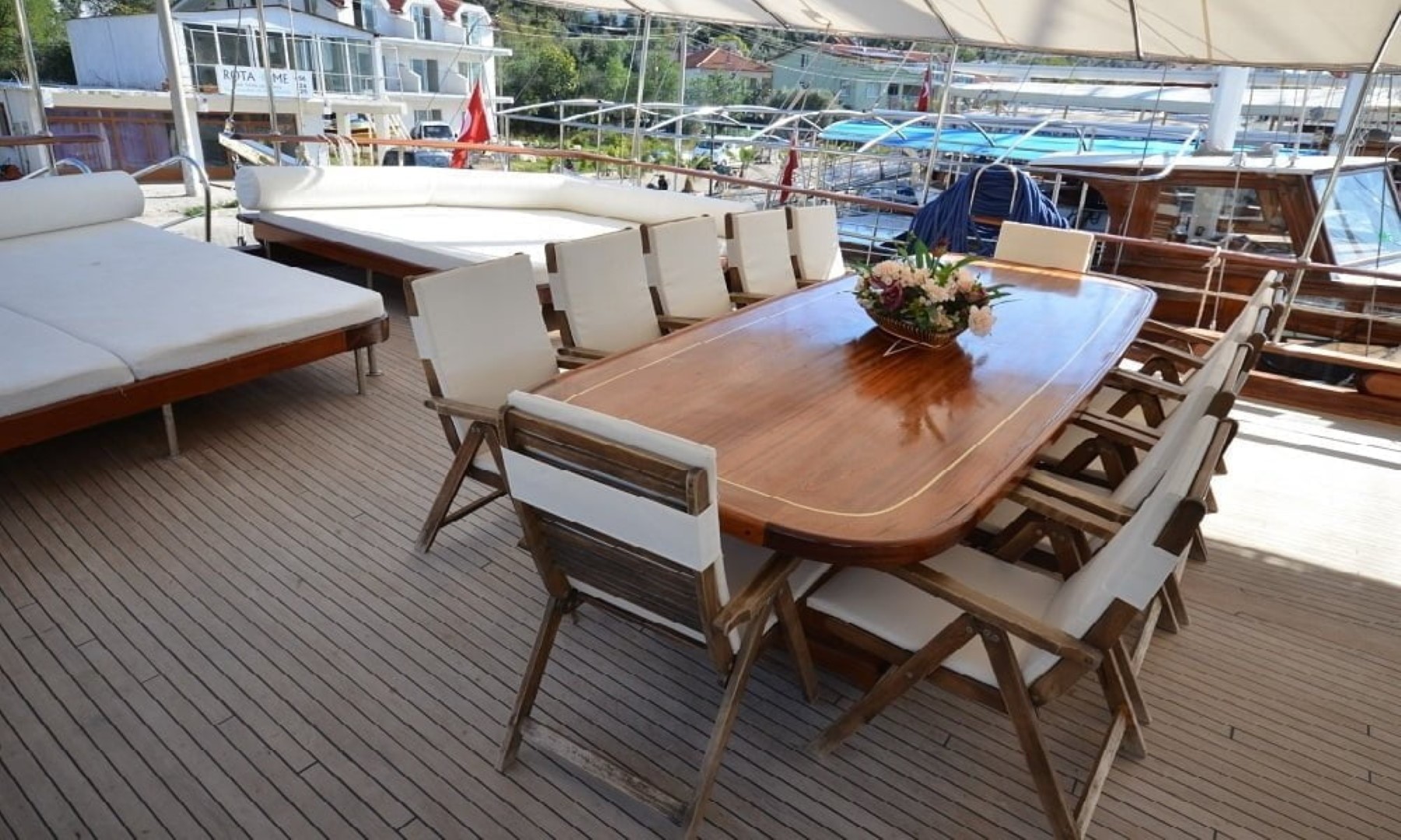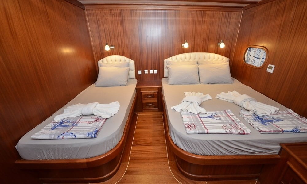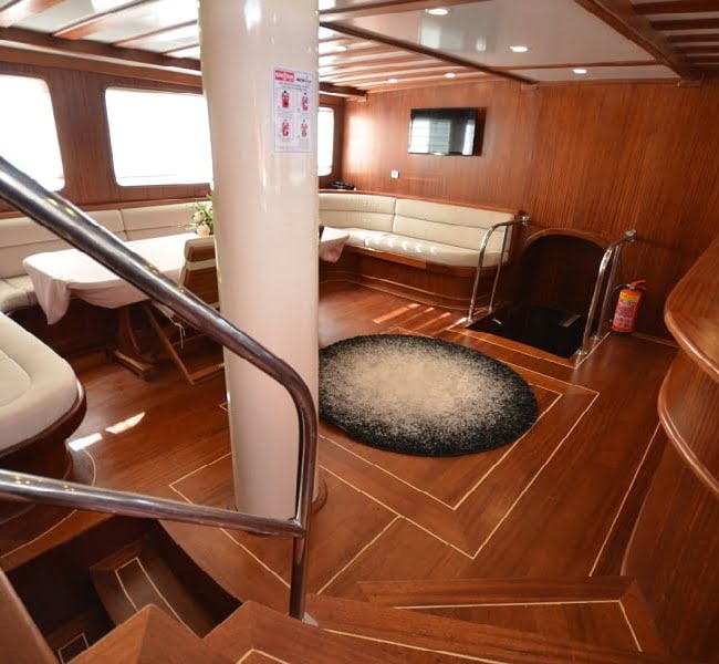 30 mt uzunluğu, 8 mt genişliği ve 2.80 mt derinliğindeki Ketch tipli, ahşap gövdeli teknemiz Marmaris Limanı’nda, Türk bayrağımız dalgalı şekilde yer alır. Alabileceği yolcu sayısı 12 iken, mürettebat sayısı ise 4tür.