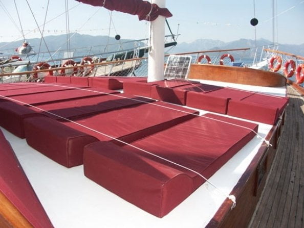 Çağatay 2 guletimiz tam donanımlı bir mutfağa sahip olup, açık ve kapalı yemek bölümü ile klimalı bir salonu bulunmaktadır. Üst güvertede geniş yaşam alanları bulunmakta ve misafirlerimiz ön güvertede güneşlenirken arka güverte de rahatlıkla yemek yiyebilmektedirler.