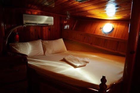 Cemalefe Guletimiz 6 double kabin ve toplam 12 kişi konaklama kapasitelidir. Her kabinde duş-wc ve klima bulunmaktadır.Kalabalık guruplar için ideal bir ahşap yat olan Cemalefe, mavi yolculuk tutkunları için vazgeçilmezler arasına girmeye aday.Sonraki yıllarda yapacağınız tekne kiralamalarında aklınıza başka bir tekne gelmeyecek…