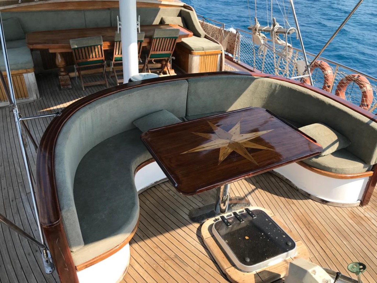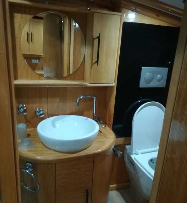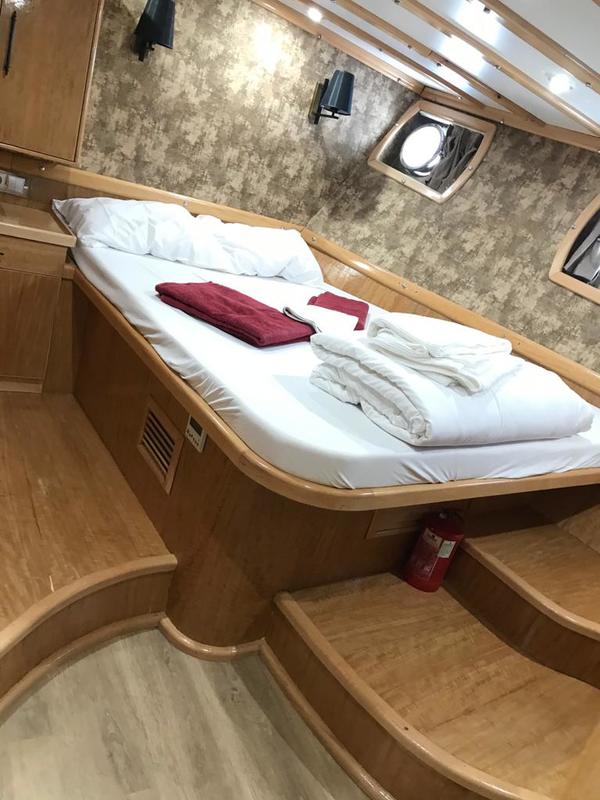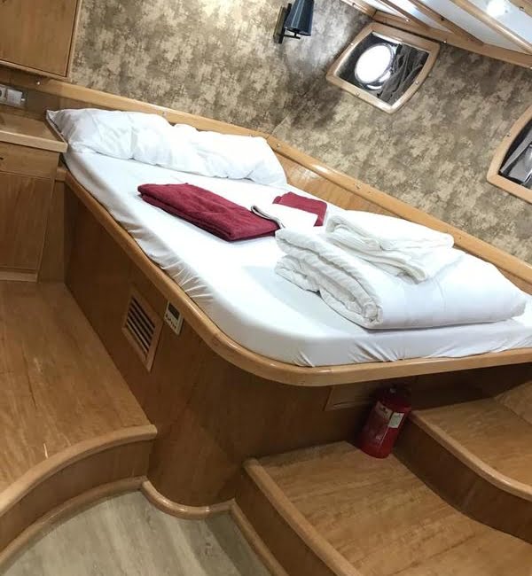Her daim genişliği ve ferahlığı ile dikkat çeken 12 kişilik yolcu kapasitesine sahip olan teknemizde 6 adet çift kişilik kabin ve her kabinde ev tipi tuvalet ve banyo bulunmaktadır. 6000 litrelik temiz su tankına sahip teknemizde aynı zamanda 24 kw’lik jeneratör vardır. Ayrıca tam teşekküllü telsiz ve GSM hizmetleri ile sizi asla iletişimden koparmayan tekne; kategorisinde en başarılı teknelerden biridir.