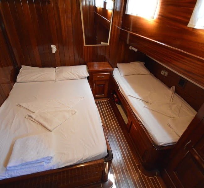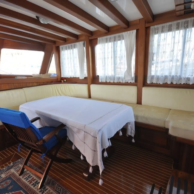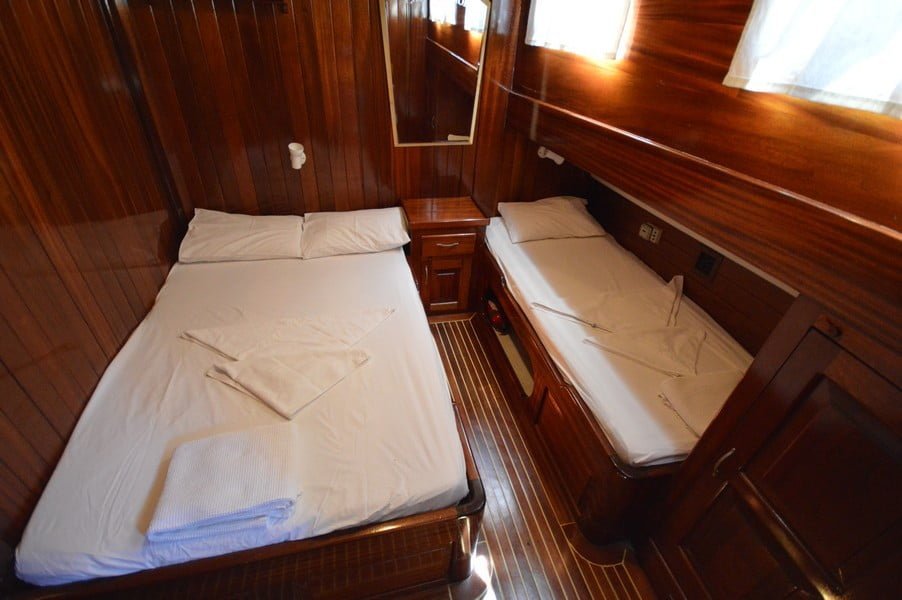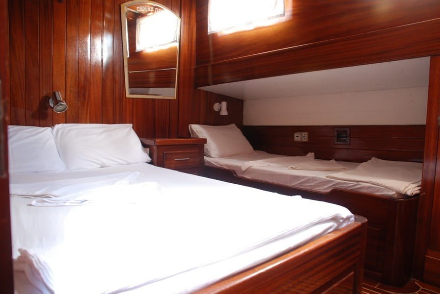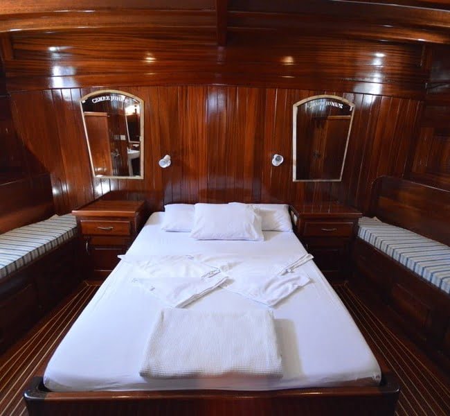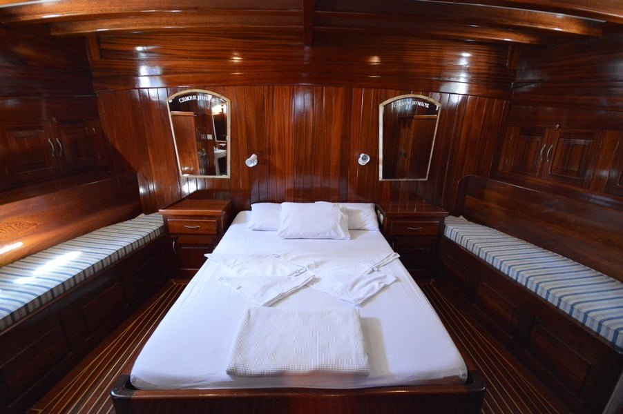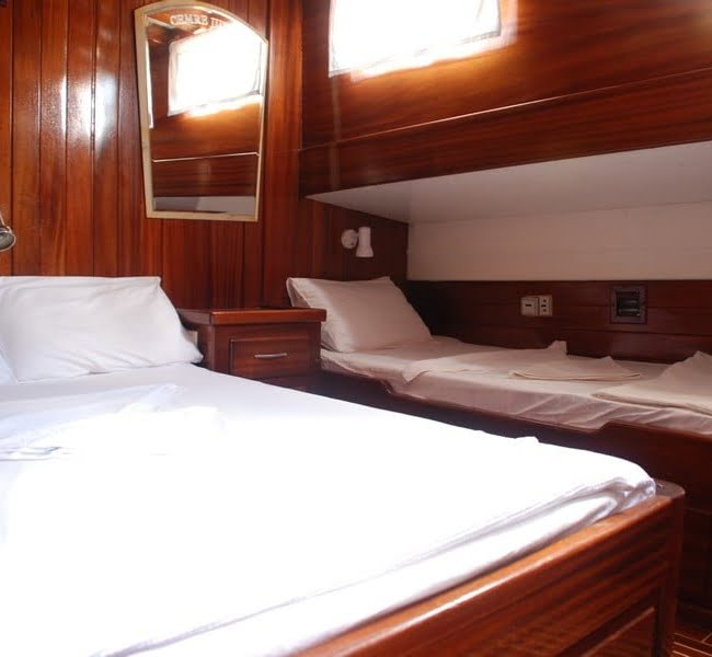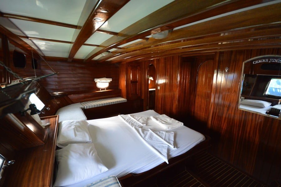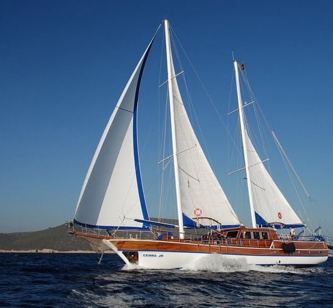 Gulet Cemre Junior, 2006 yılında 25 metre uzunlukta, 6.30 metre genişlikte ve 3 metre derinlikte inşa edilmiştir. Her yıl bakımları yapılan teknemiz modern şekilde 2014 ve 2016 yıllarında renovasyona uğrayıp günümüzdeki halini almıştır. 2 Master Kabin ve 4 Triple Kabinde 12 misafir ağırlayabilmektedir. Kabinler geniş, ferah ve modern şekilde zevkle dizayn edilmiş olup Saç Kurutma Makinesi, Klima, Duş ve Wc mevcuttur. Tam donanımlı mutfağımızda özenle hazırlanan yemeklerimizi kıç güvertede veya salonda bulunan şık sofralarımızda tadabilirsiniz. Güvertede geniş minderli oturma alanı, güneşlenme alanı ve güneşlenme minderleri yeterli miktarda mevcuttur. Misafirlerin daha iyi zamanlar geçirebilmesi için müzik sistemi, TV ve uydu salonda yer alırken klimada her daim kullanımlarına açıktır. Eğer denizin mavi sularını en iyi şekilde değerlendirmek isterseniz bunun içinde teknenin pek çok avantajı bünyesinde bulundurduğunu belirtmek gerekir. İletişim ve güvenlik açısından beklentilerinizi tam olarak karşılayacak bir yapıya sahiptir. İletişim cihazları, pusula, GPS, seyir cihazları, derinlik ölçer, elektronik harita gibi seçeneklerde teknede bulunanlar arasında yer alır. Ege ve Akdeniz’in eşsiz güzellikteki koylarında sizleri ağırlamaktan memnuniyet duyarız.