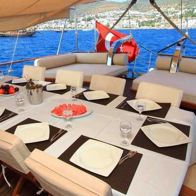 Ceo 3 guet yatımızda tam donanımlı bir mutfak ve özel aşçımız ile sizlere farklı tatlar sunmaktayız. Teknemizde bulunan salonda TV,DVD, müzik sistemi bulunmaktadır.