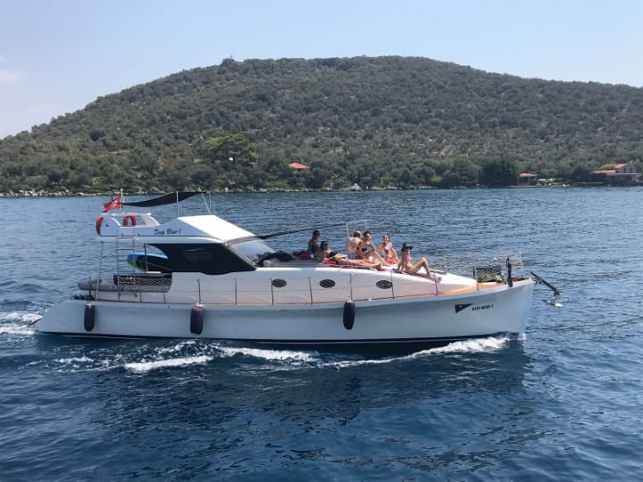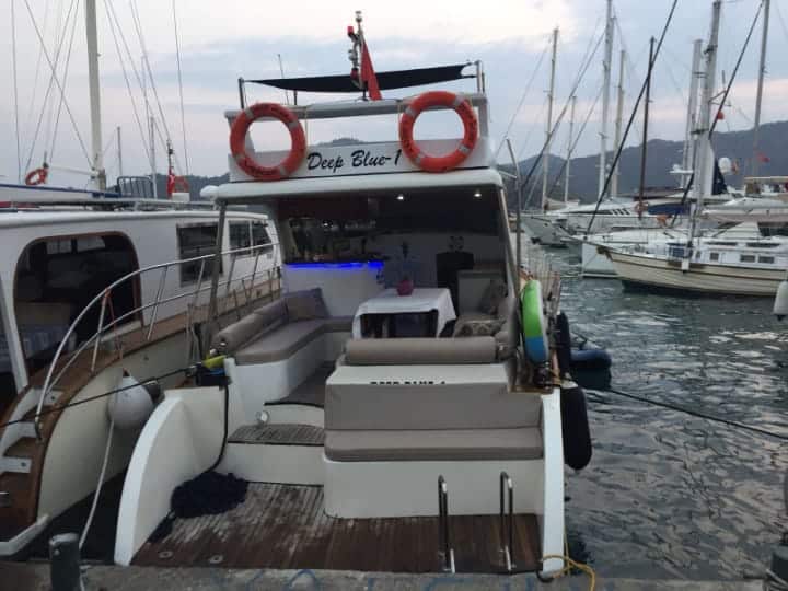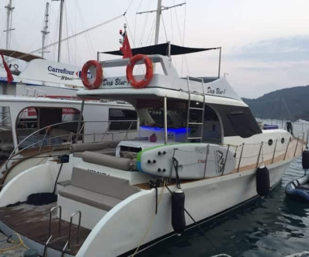 Deep Blue motoryat,2016 senesinde tamamen yenilenerek revize edilen ve 2 kamaradan oluşan teknede misafirler için kaliteli yolculuk hizmeti verilmektedir. 4 kişiye kadar yolcu taşıma kapasitesine sahip olan lüks teknemizde, mavi yolculuk sırasında tüm ihtiyaçlarınız karşılanmaktadır. Teknemizde yolcuların rahatlığı için her detay önceden düşünülmüştür. 18 metre uzunluğa sahip olan teknemizde flybridge ismi verilen üst yaşam alanı da mevcuttur. Ekonomik ücretler karşılığında mavi tur tatili gerçekleştirmek isteyen kişilerin tüm bu özellik tercih nedeni olmaktadır. Deep Blue motoryat ile keyifli seyahat geçirebilirsiniz.