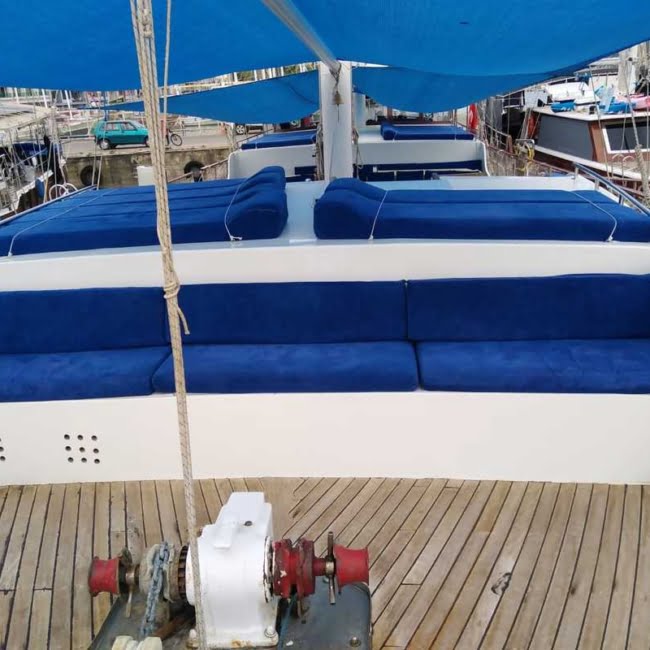 Gulet Dinç-Bu yat 30 m uzunluğunda düz güverte standart artı bir yattır.