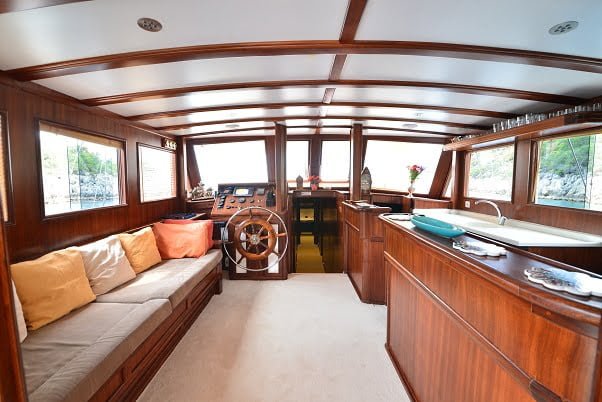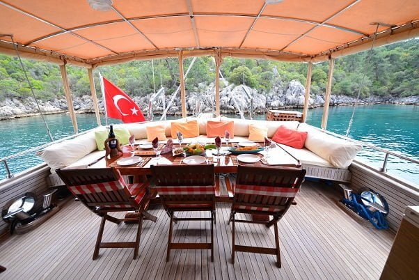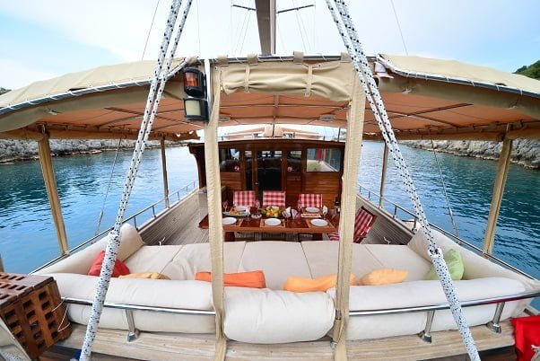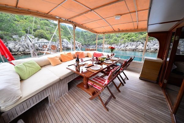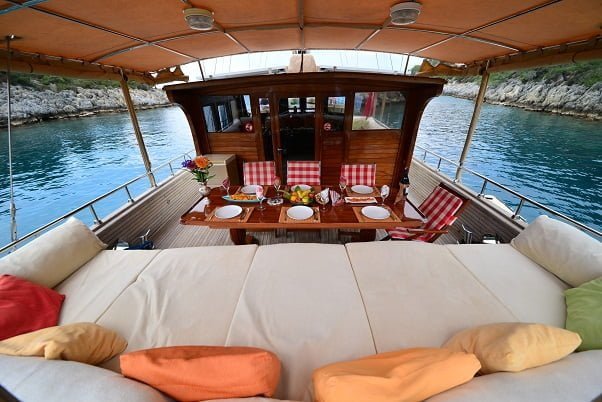 Tekne Kiralama turlarımızda çokça tercih edieln bu teknemiz ile tüm Göcek Koyları, 12 adalar, Ölüdeniz ve kelebekler Vadisi rotalarını gezebilirsiniz.