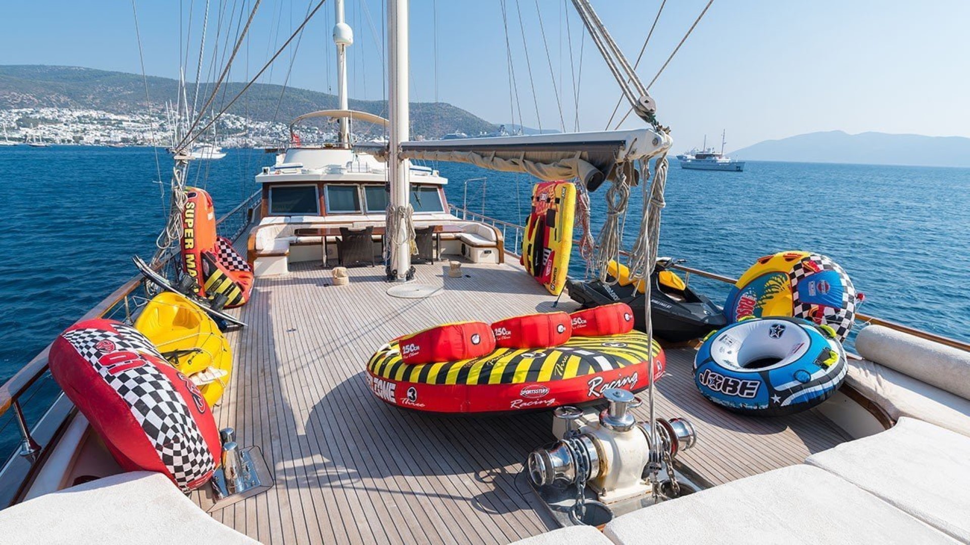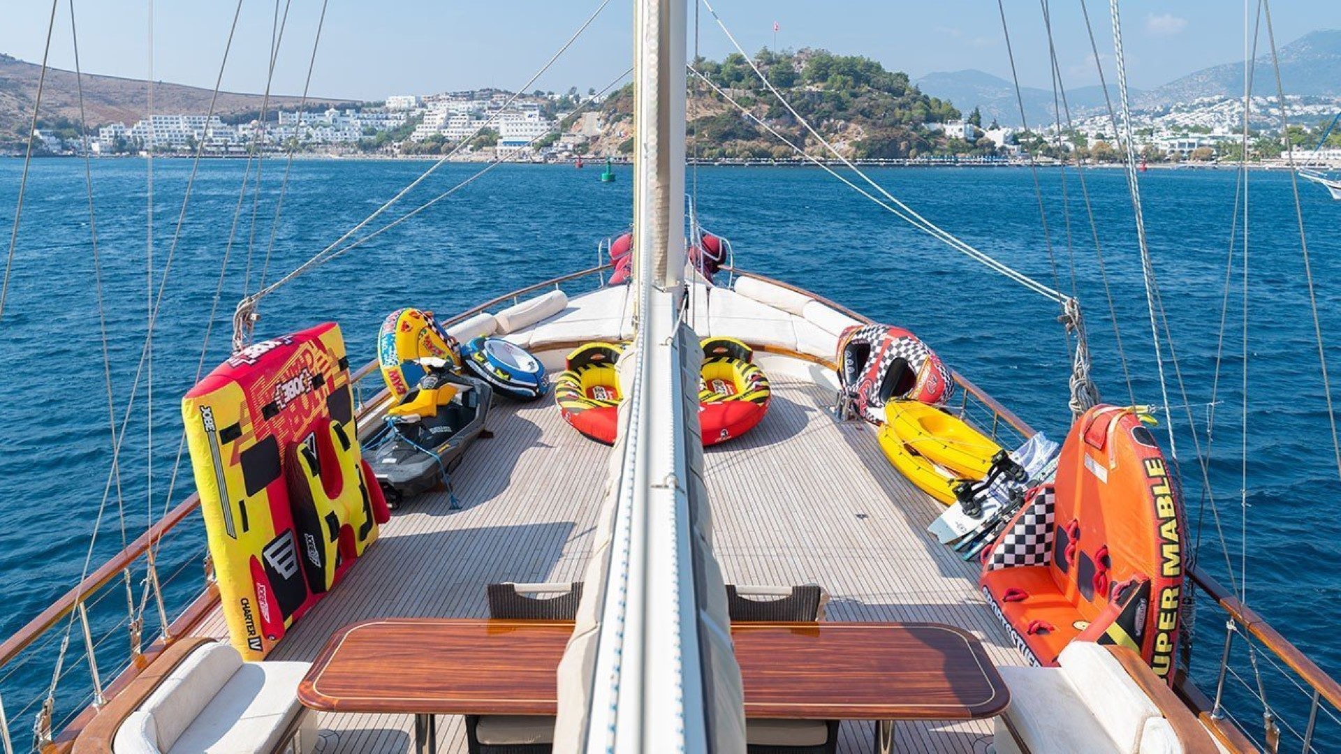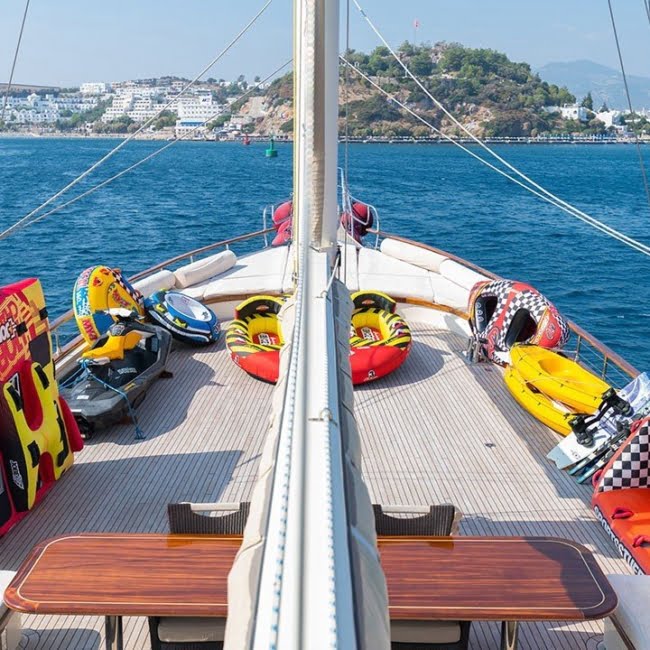 Teknemiz Double Eagle’da misafirlerimizin gün boyunca yararlanabileceği su sporları ekipmanları bulunmaktadır.