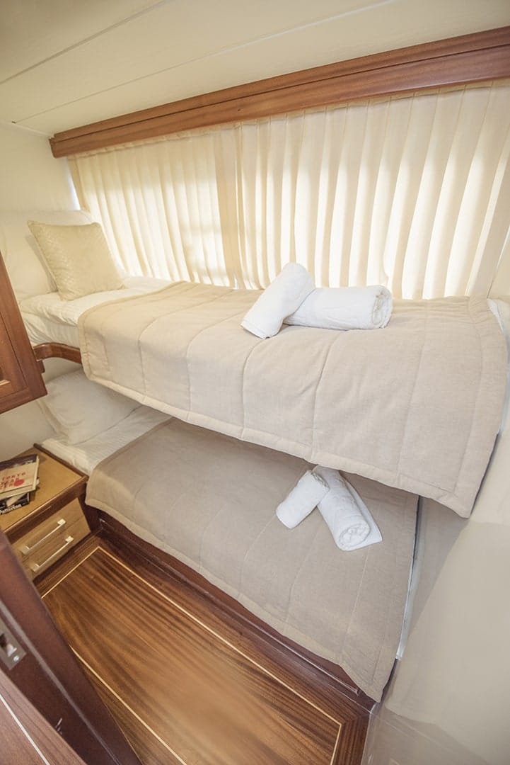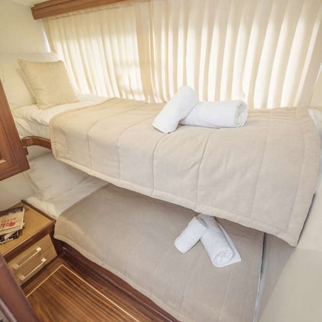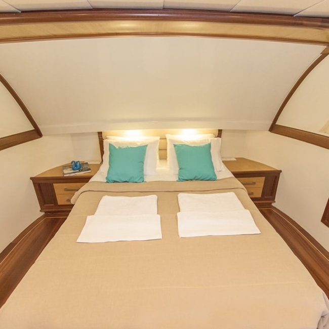 Gulet Düriye, 2018 yılında yapılarak misafirlerimizin hizmetine sunulmuştur. Toplamda 2 kabin olmak üzere maksimum konaklama kapasitesi 4 kişidir.