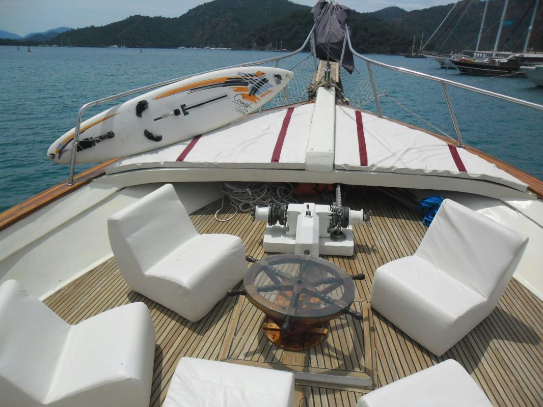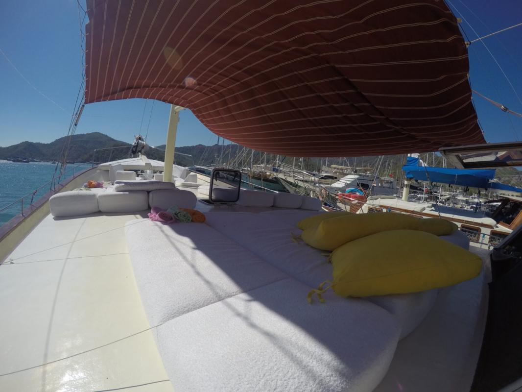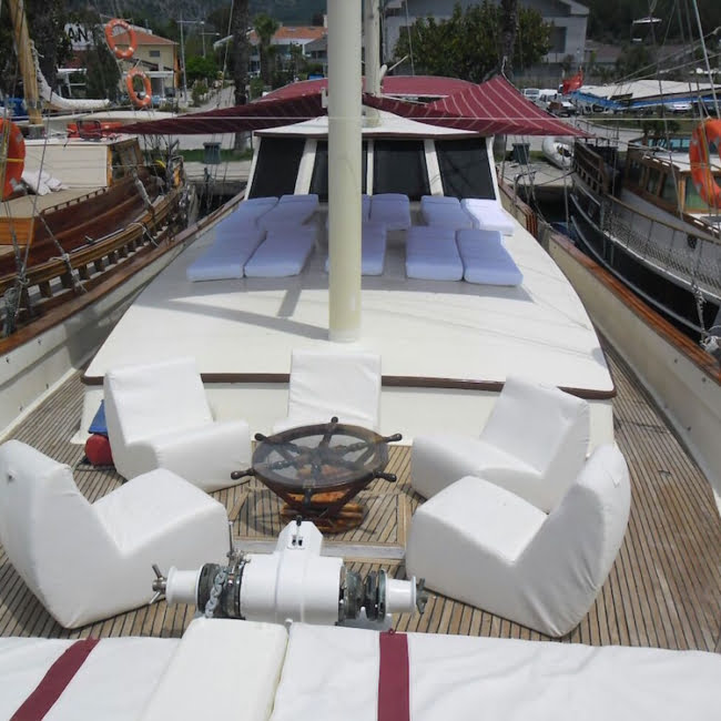 Gulet Barefoot, kıç güvertede geniş minderli bir oturma alanı, yemek masası ve yemek alanı bulunmaktadır. Salonda ise ayrı bir yemek masası olup yemekleriniz tam donanımlı ayrı bir mutfakta hazırlanmaktadır ayrıca salon bölümünde siz misafirlerimizin eğlenceli, keyifli ve hoş vakit geçirebilmesi için TV, müzik sistemi ve DVD player mevcuttur. Tüm misafirlerimize yeterli güneşlenme alanları ve güneş minderleri mevcuttur.Gulet Barefoot eşsiz mavi yolculuğunuzun tadını çıkartabilmeniz için tüm deneyimleri ile size eşilik edeceklerdir.