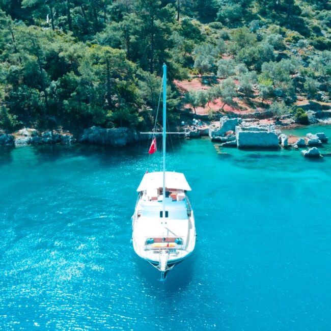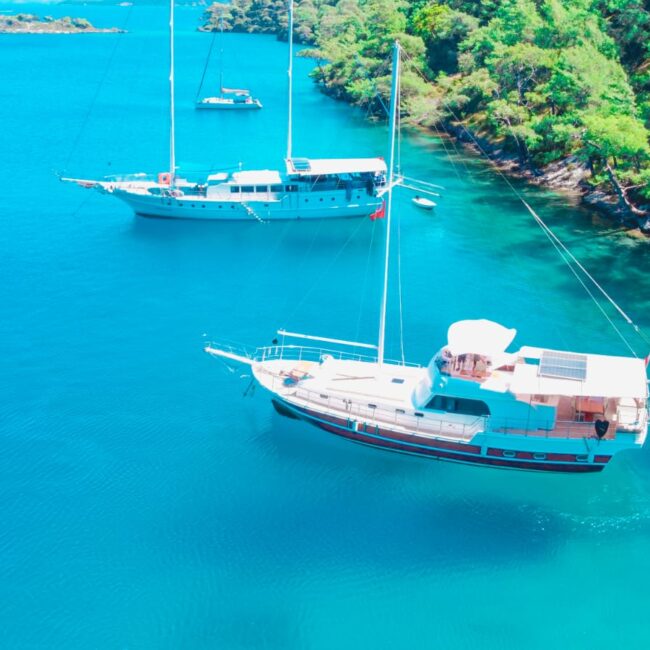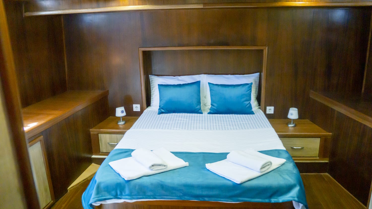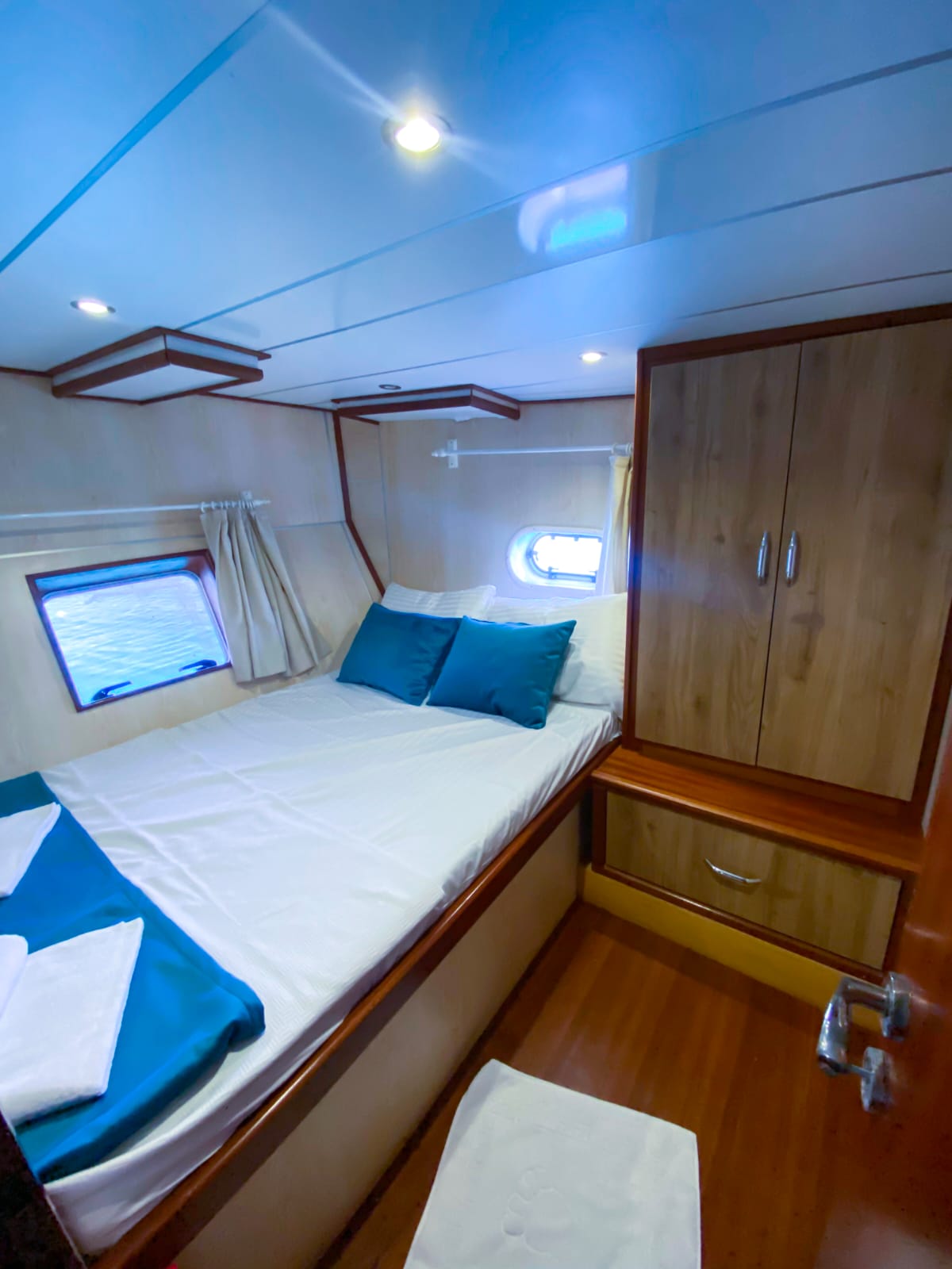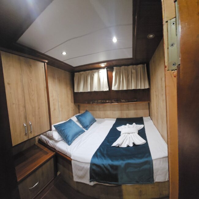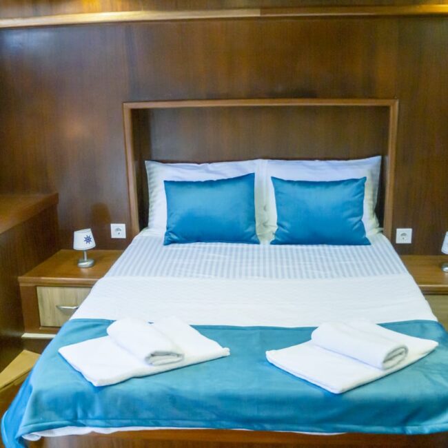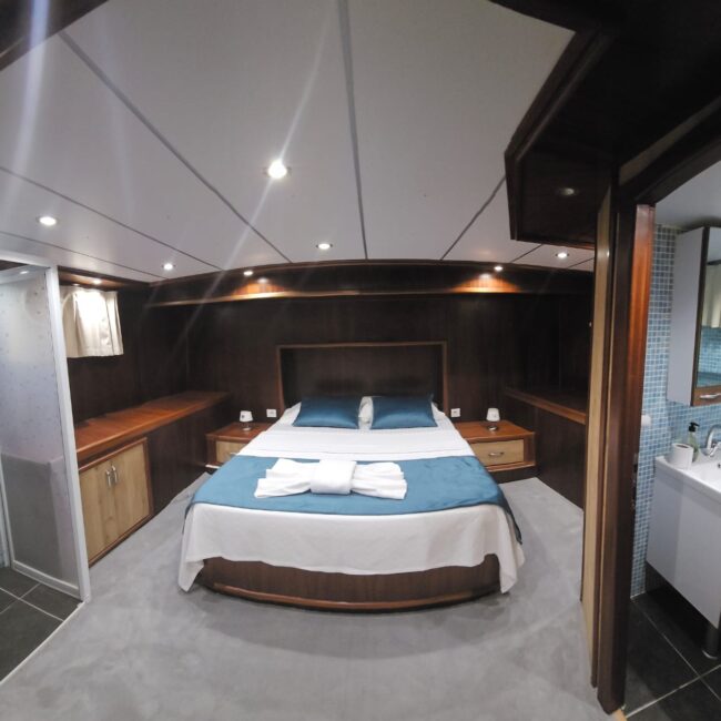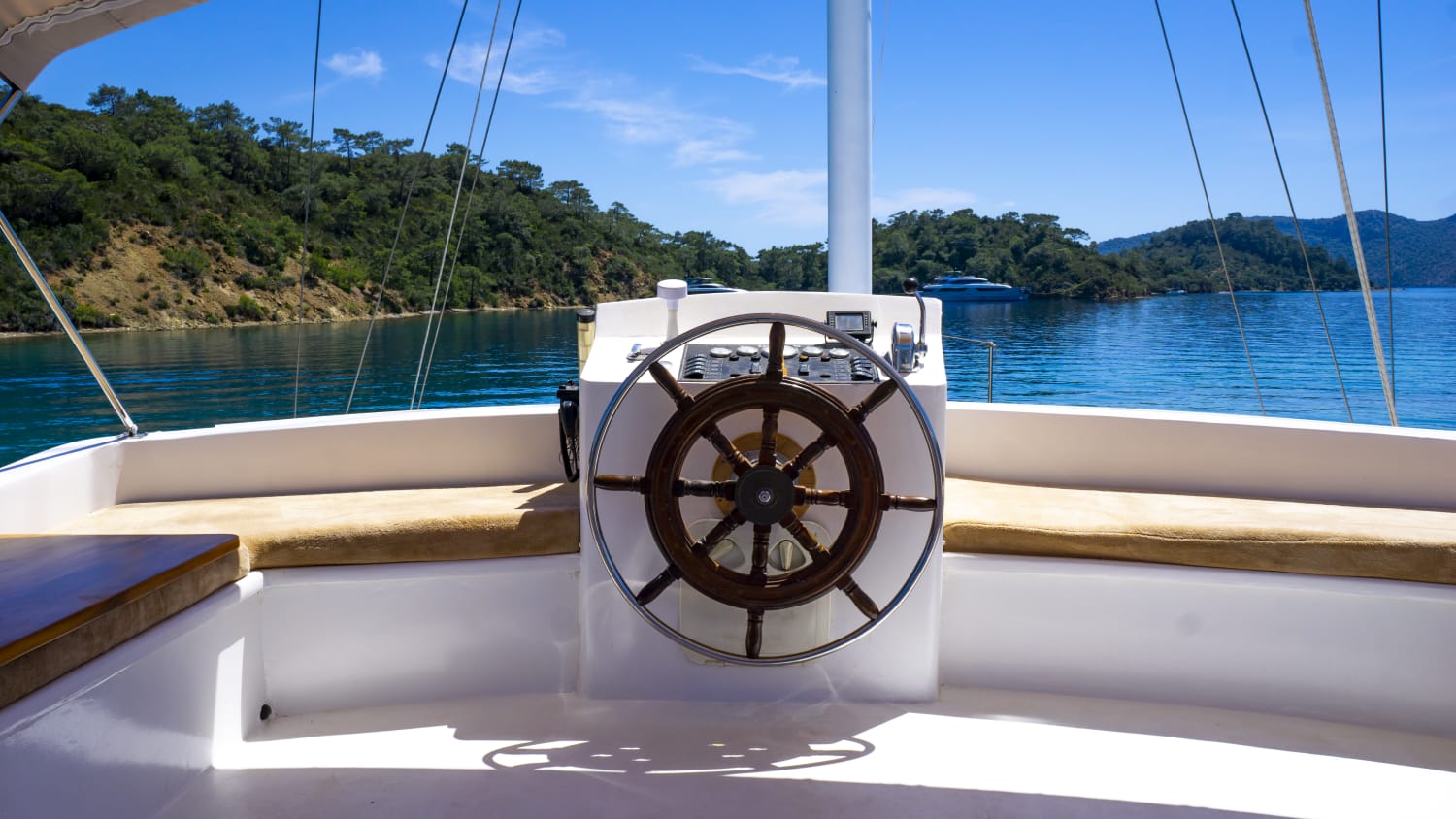 Göcek Marina çıkışlı 20 metre uzunluğundaki teknemiz, 1 master kabin, 4 double kabini ve deneyimli 3 kişilik mürettebatıyla 10 kişilik misafir kapasitesiyle konforun ve estetiğin bir arada olduğu muhteşem bir mavi yolculuk deneyimi yaşayabilmeniz için hizmet vermektedir.