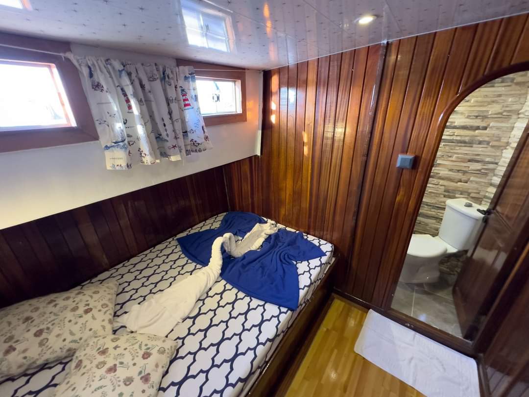 Gulet Prenses Ela,yolculuğunuz boyunca size eşlik edecek olan 3 personelin konaklaması için ayrı kabinler mevcuttur. Kaptan, aşçı, gemici ve servis personellerinden oluşan mürettebat tur boyunca yemek, temizlik, bakım ve günlük faaliyetlerin organizasyonunu yapmakta, konukların rahat etmesi için işlerinin olmadığı anlarda kendi kamaralarına çekilmektedir.
