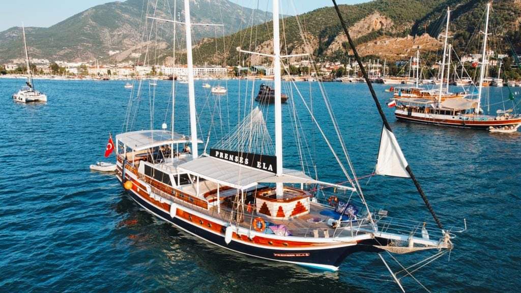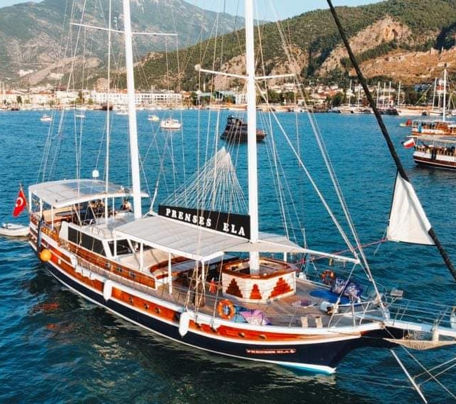 Gulet Prenses Ela, 24 metre uzunluğunda 2001 yılında inşa edilmiş ve 2011 yılında tamamen yenilenmiştir. Gulet Prenses Ela, 7 kabinden olusan teknemiz 4 Trible Kabin ve 3 double olmak üzere toplamda 16 misafir ağırlayabilme kapasitesi vardır. Tüm misafirlerimizin rahatliğı ve konforu ön planda düşünülerek,her kabinimizde Klima, Duş, WC mevcuttur.