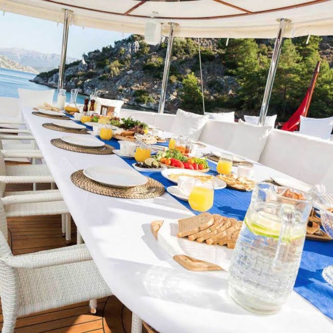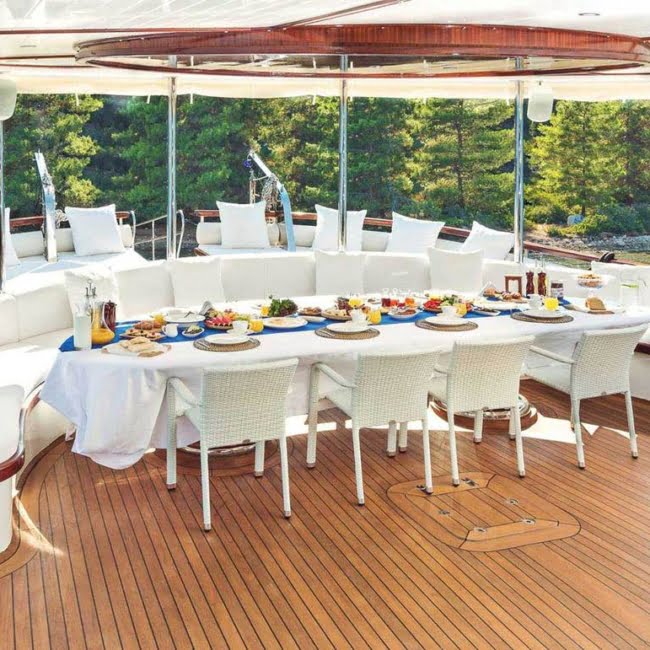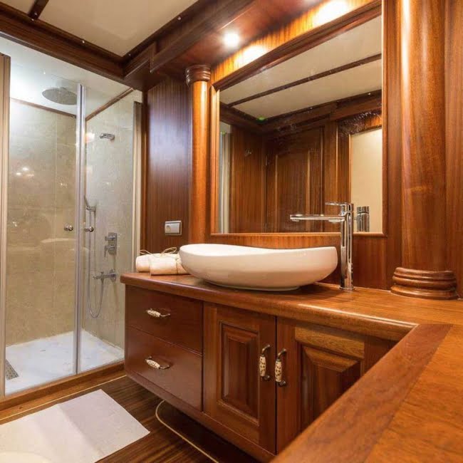Gulet Halcon Del Mar, 2018 yılında 41 metre uzunlukta ve 4.5 metre derinlikte inşa edilmiştir. Her yıl bakımları yapılan delüks teknemiz; 2 VIP Kabin, 2 Master Kabin, 2 Double Kabin ve 2 Twin Kabinde 16 misafiri ağırlayabilmektedir. Kabinler geniş, ferah ve modern şekilde zevkle dizayn edilmiş olup Televizyon, Saç Kurutma Makinesi, Klima, Duş ve Wc mevcuttur. Tam donanımlı mutfağımızda özenle hazırlanan yemeklerimizi kıç güvertede veya salonda bulunan şık sofralarımızda tadabilirsiniz. Güvertede geniş minderli oturma alanı, güneşlenme alanı ve güneşlenme minderleri yeterli miktarda mevcuttur. Ön güvertede Jakuzi mevcut olup ayrıca Flybridge alanında güneşlenip, sıcak-soğuk içeceklerinizi içebilirsiniz. Misafirlerin daha iyi zamanlar geçirebilmesi için internet, müzik sistemi, TV ve uydu salonda yer alırken klimada her daim kullanımlarına açıktır. Eğer denizin mavi sularını en iyi şekilde değerlendirmek isterseniz bunun içinde teknenin pek çok avantajı bünyesinde bulundurduğunu belirtmek gerekir. İletişim ve güvenlik açısından beklentilerinizi tam olarak karşılayacak bir yapıya sahiptir. İletişim cihazları, pusula, GPS, seyir cihazları, derinlik ölçer, elektronik harita gibi seçeneklerde teknede bulunanlar arasında yer alır. Ege ve Akdeniz’in eşsiz güzellikteki koylarında sizleri ağırlamaktan memnuniyet duyarız.