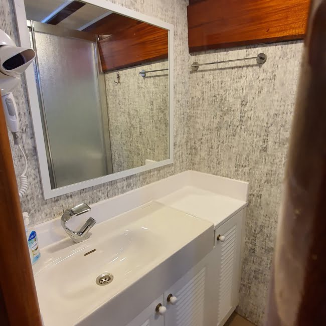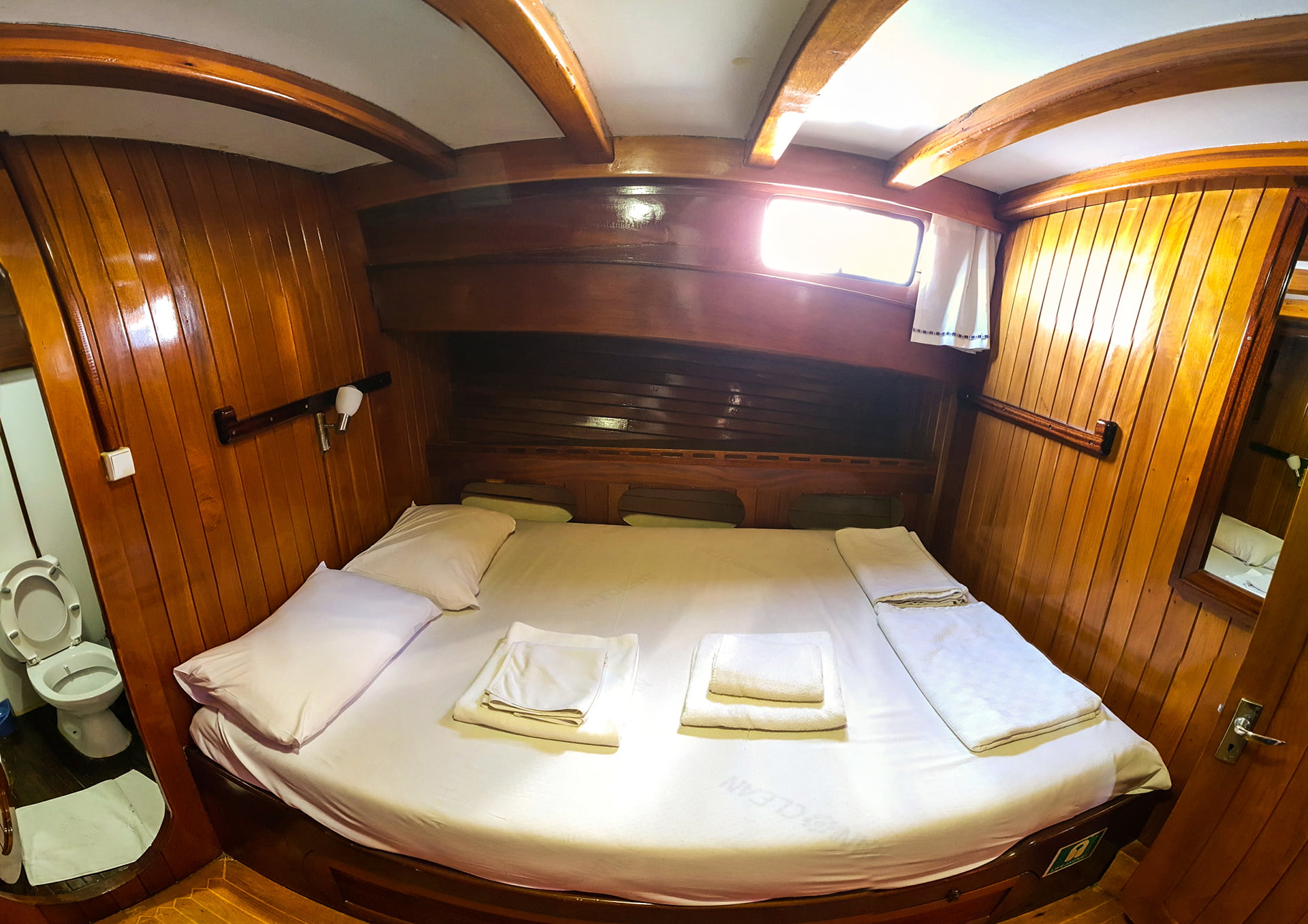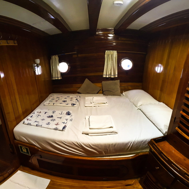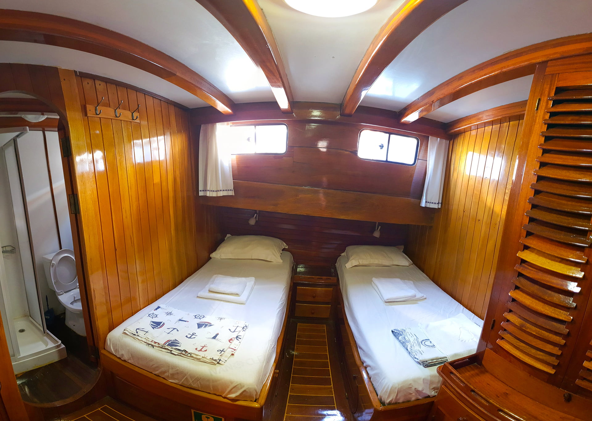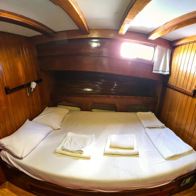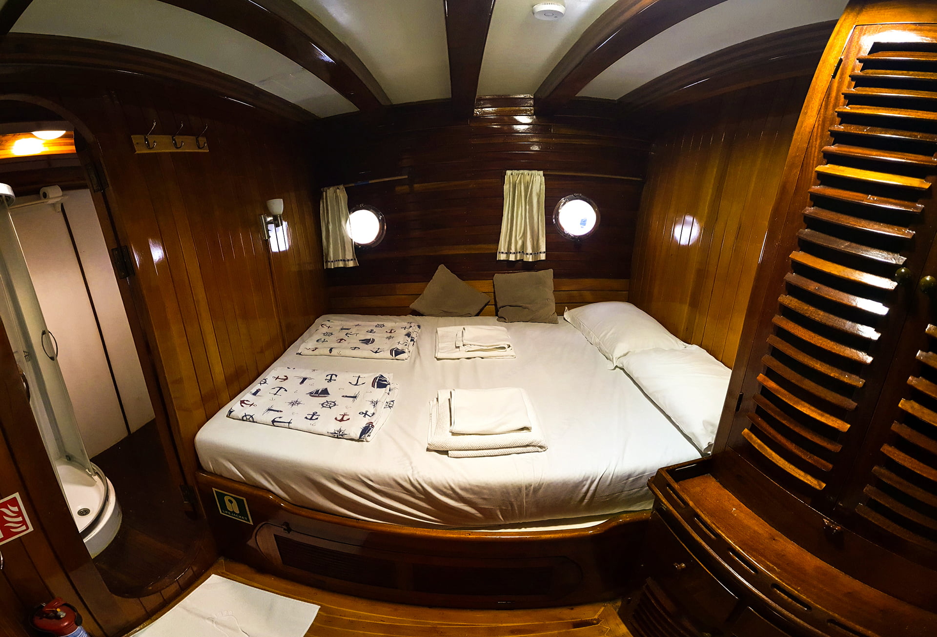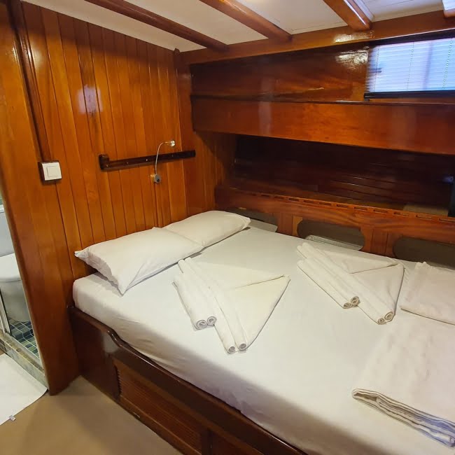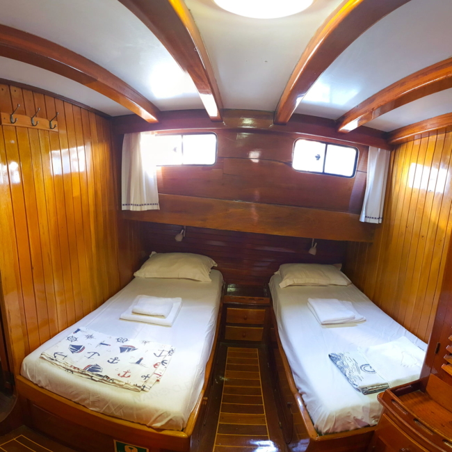 6 double, 2 twin olmak üzere toplam 8 kabin mevcut olup maksimum konaklama kapasitesi 16 kişidir.