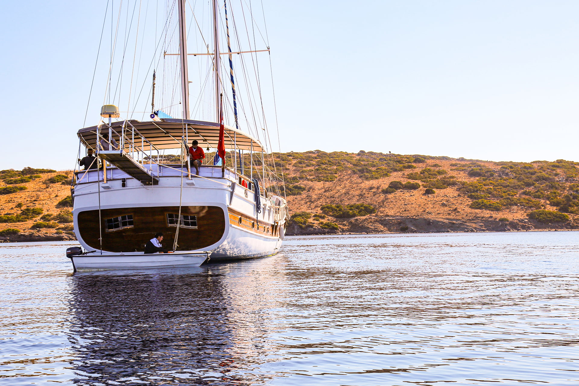 Türk bayrağıyla mavi tur hizmeti veren teknemizde 3-4 mürettebat bulunmaktadır.