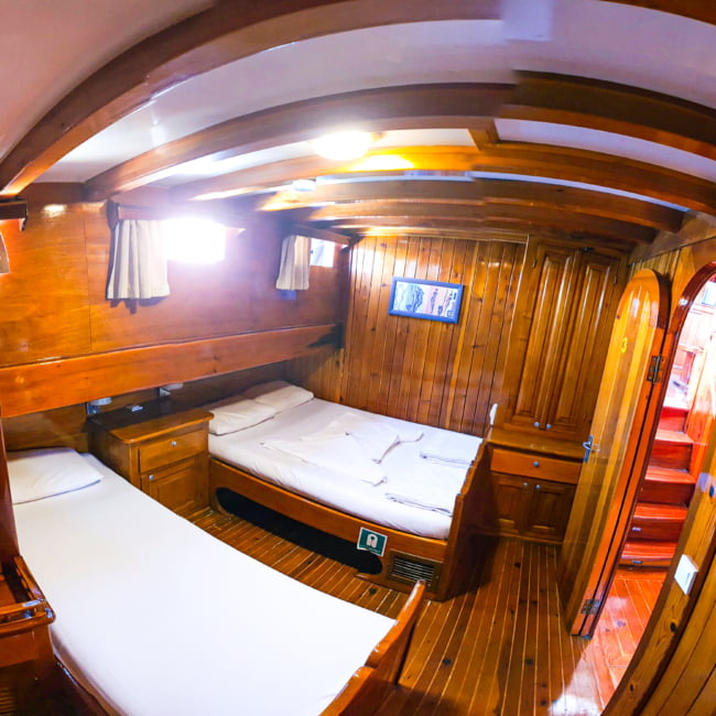 Kalabalık grupların tercih ettiği bu guletimizde 3 double kabin ve 4 triple kabini mevcuttur.