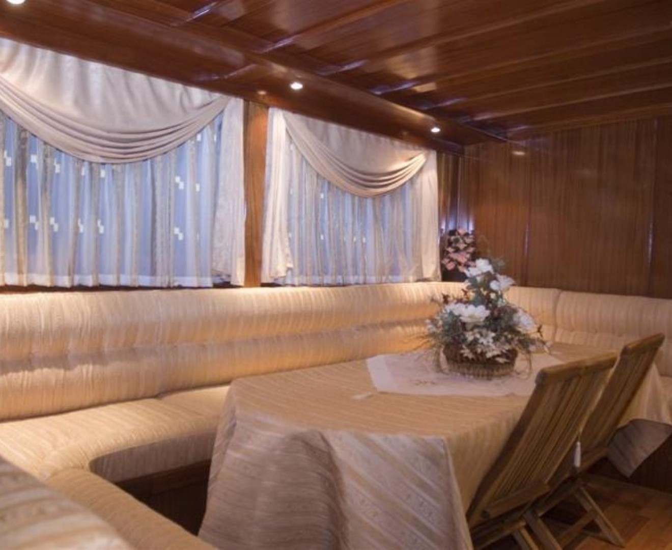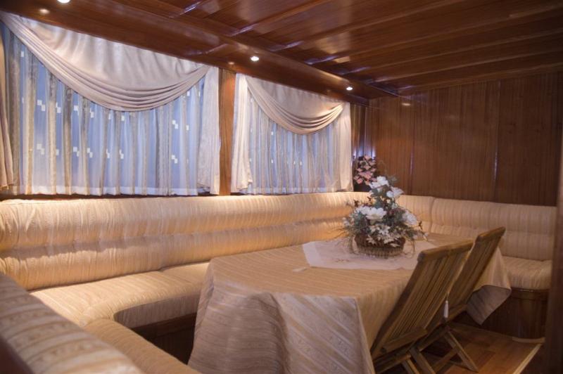 Gulet Harun Bey,salon ve güverte kullanım açısından geniş ve ferahtır. Tam donanımlı mutfağımızda hazırlanan yemekleri güvertede veya salonda bulunan şık sofralarımızda tadabilirsiniz.Her misafirimiz için yeterli güvertede yeterli miktarda güneşlenme alanı ve güneşlenme minderi mevcuttur.Gulet Harun Bey, eğlenceli, huzurlu, enerjiniz yüksek tatilinizi geçirmeyi sağlar.