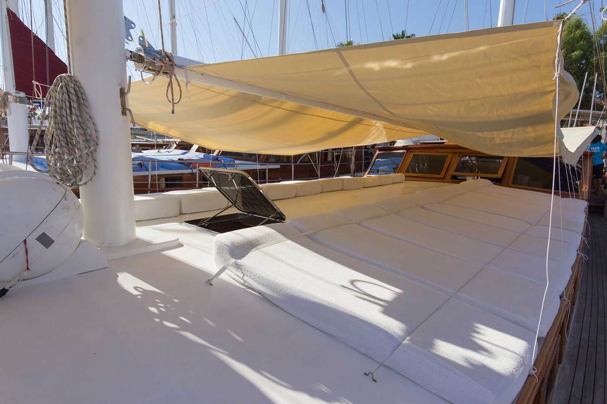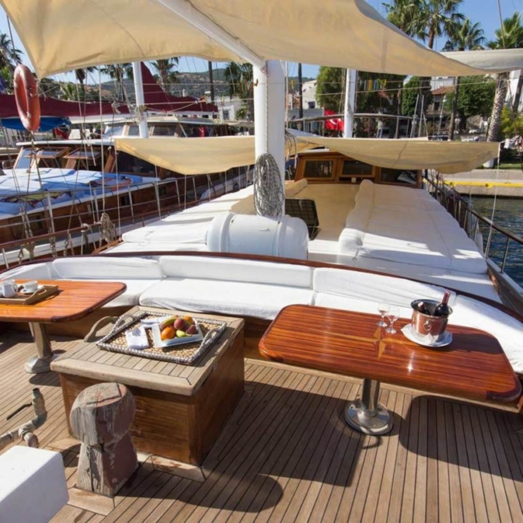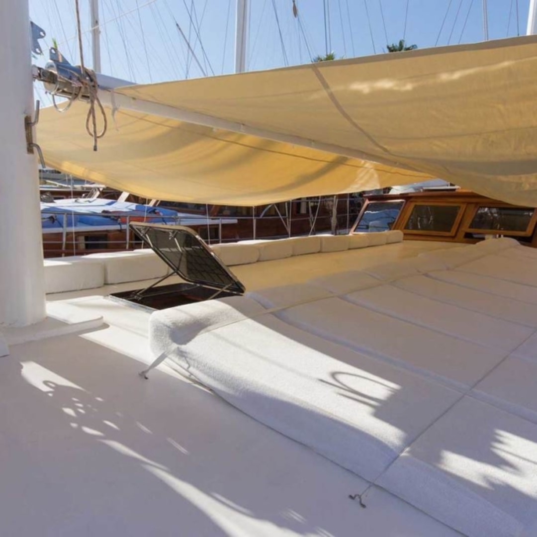 Tüm misafirlere yetecek miktarda güneşlenme minderleri, sandalye ve servis takımları mevcuttur. Mavi Yolculuk misafirlerimize konforu, lüksü ve huzuru bir arada yaşatan bu yatımız 8 deniz miline erişmektedir.