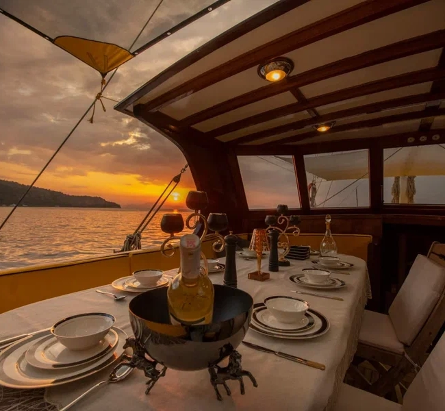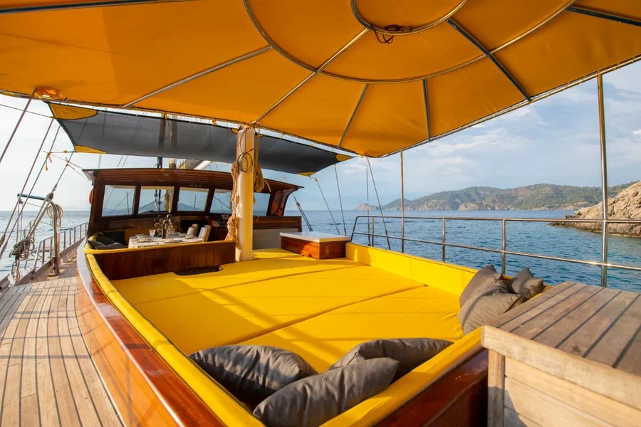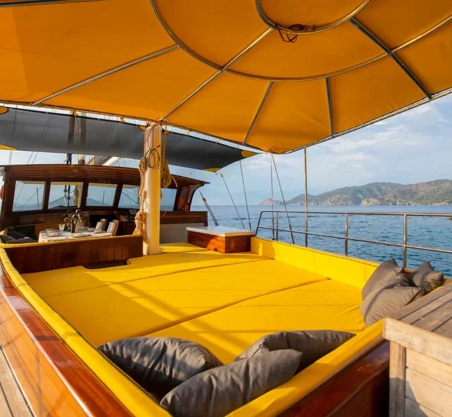 Gulet Hülyam 1 , 23 metre uzunluğundaki teknemiz 5 kamaraya sahiptir. 10 kişiye kadar hizmet verebilmektedir. Her kabinde wc, duşa kabin,klima, elbise dolabı, saç kurutma makinesi bulunmaktadır.Güvertede güneşlenme minderleri, önde ve arkada dinlenme alanları, sandalye, masa, servis takımları, güvenlik ekipmanları, gözlük ve palet mevcuttur.