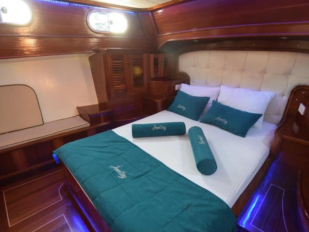 Gulet İncilay 2019 yapımı olur 2021 tarihinde tamamen yenilenmiştir. 12 metre uzunluğunda,5m genişliğinde ve 3 kabiniyle toplam 6 yolcuya hizmet etmektedir. Kabinler 2 double ve 1 single kabin şeklindedir.Her kabinde wc banyo bulunmaktadır. Güvertede müzik sistemi mevcuttur. Teknemizde siz misafirlerimiz için güneş yatakları, deniz merdiveni ve güvertede duş imkanı bulunmaktadır.