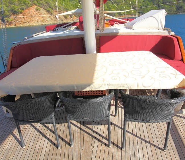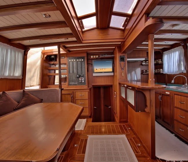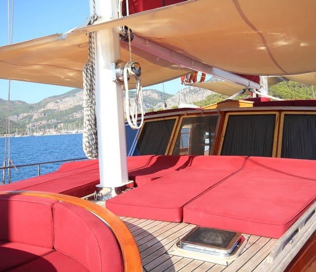 Gulet Isla,salon ve güverte kullanım açısından geniş ve ferahtır. Tam donanımlı mutfağımızda hazırlanan yemekleri güvertede veya salonda bulunan şık sofralarımızda tadabilirsiniz.Her misafirimiz için yeterli güvertede yeterli miktarda güneşlenme alanı ve güneşlenme minderi mevcuttur.Gulet Isla,huzuru dinginliği mavinin içinde yaşamanızı sağlayacak.