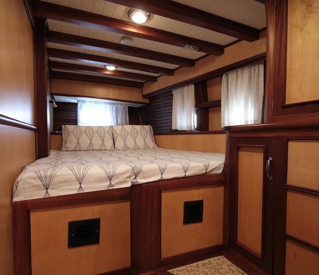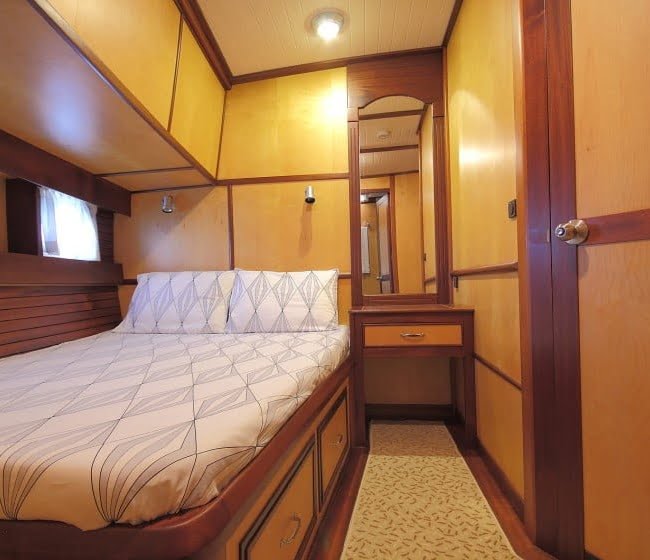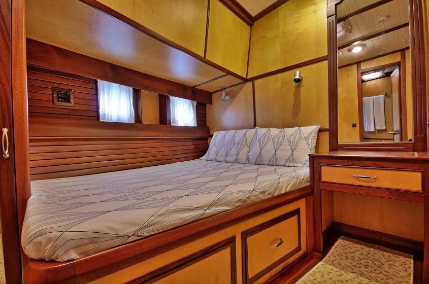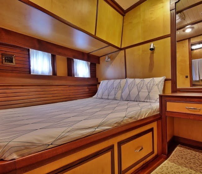 Gulet Isla, yolculuğunuz boyunca size eşlik edecek olan 3 personelin konaklaması için ayrı kabinler mevcuttur. Kaptan, aşçı, gemici ve servis personellerinden oluşan mürettebat tur boyunca yemek, temizlik, bakım ve günlük faaliyetlerin organizasyonunu yapmakta, konukların rahat etmesi için işlerinin olmadığı anlarda kendi kamaralarına çekilmektedir.