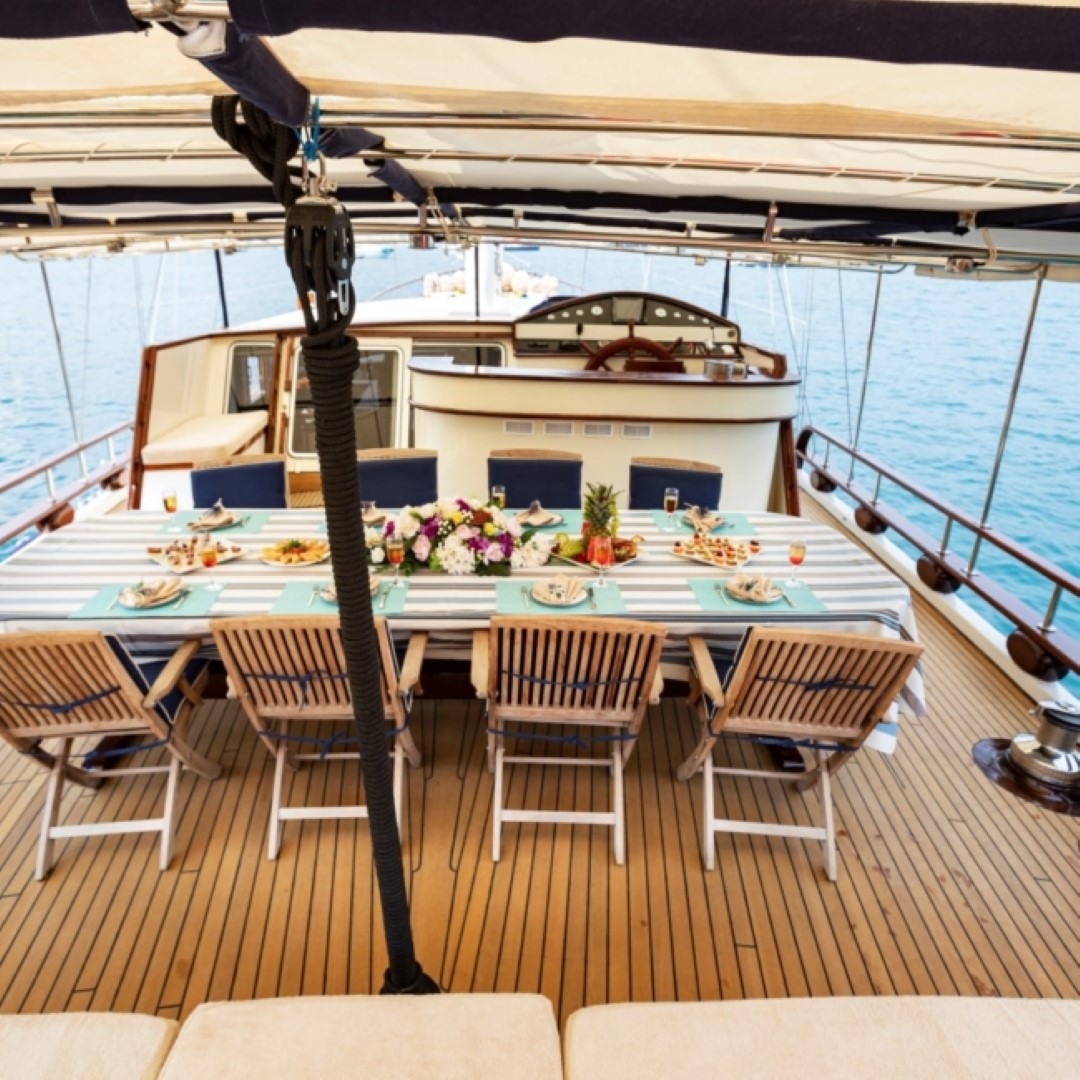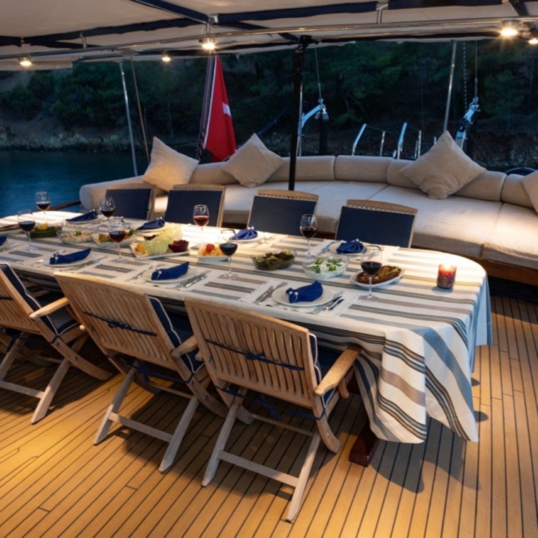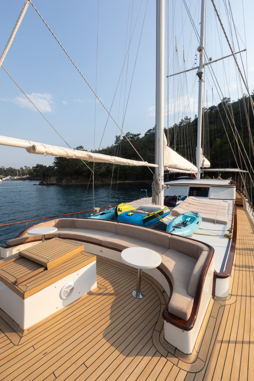 1997 Yılında 27.8 metre uzunluğunda ve 7 metre genişliğinde inşa edilen Kanarya Guleti 2019 yılında baştan sona modern şekilde renovasyona uğrayıp günümüzdeki halini almıştır. 2 Master Kabin ve 3 Twin Kabinde 10 misafir ağırlayabilmektedir. Kabinlerimiz geniş, ferah ve modern bir yapıda olup Klima, Duş ve Wc mevcuttur. Tam donanımlı mutfağımızda özenle hazırlanan yemeklerimizi kıç güvertede veya salonda bulunan şık sofralarımızda tadabilirsiniz. Güvertede geniş minderli oturma alanı, güneşlenme alanı ve güneşlenme minderleri yeterli miktarda mevcuttur.
