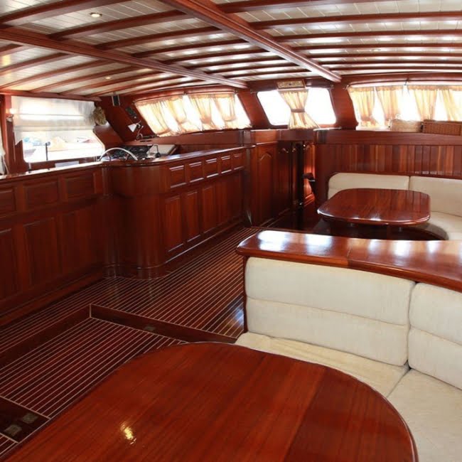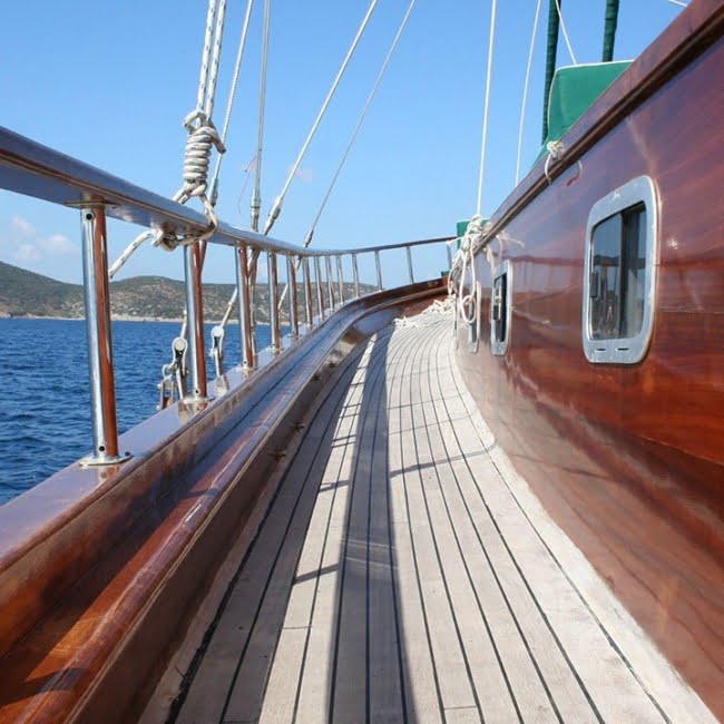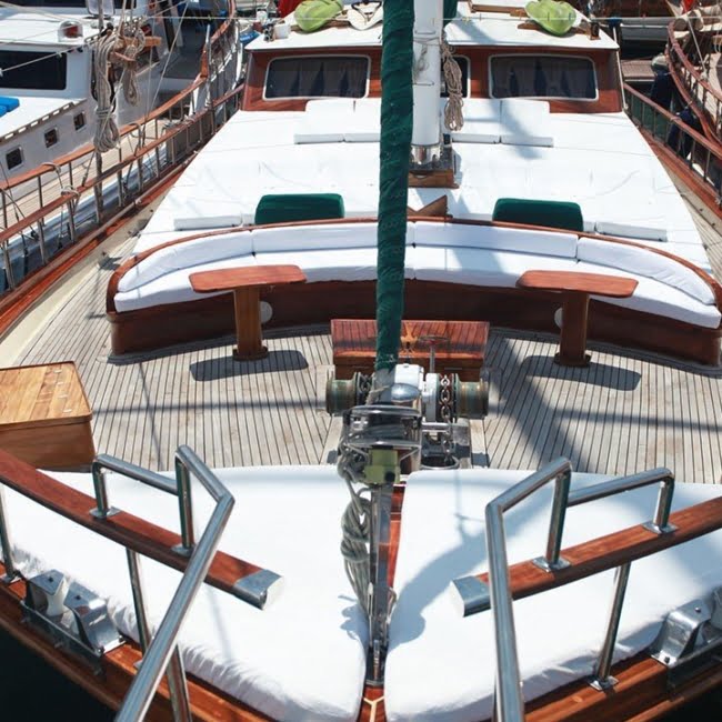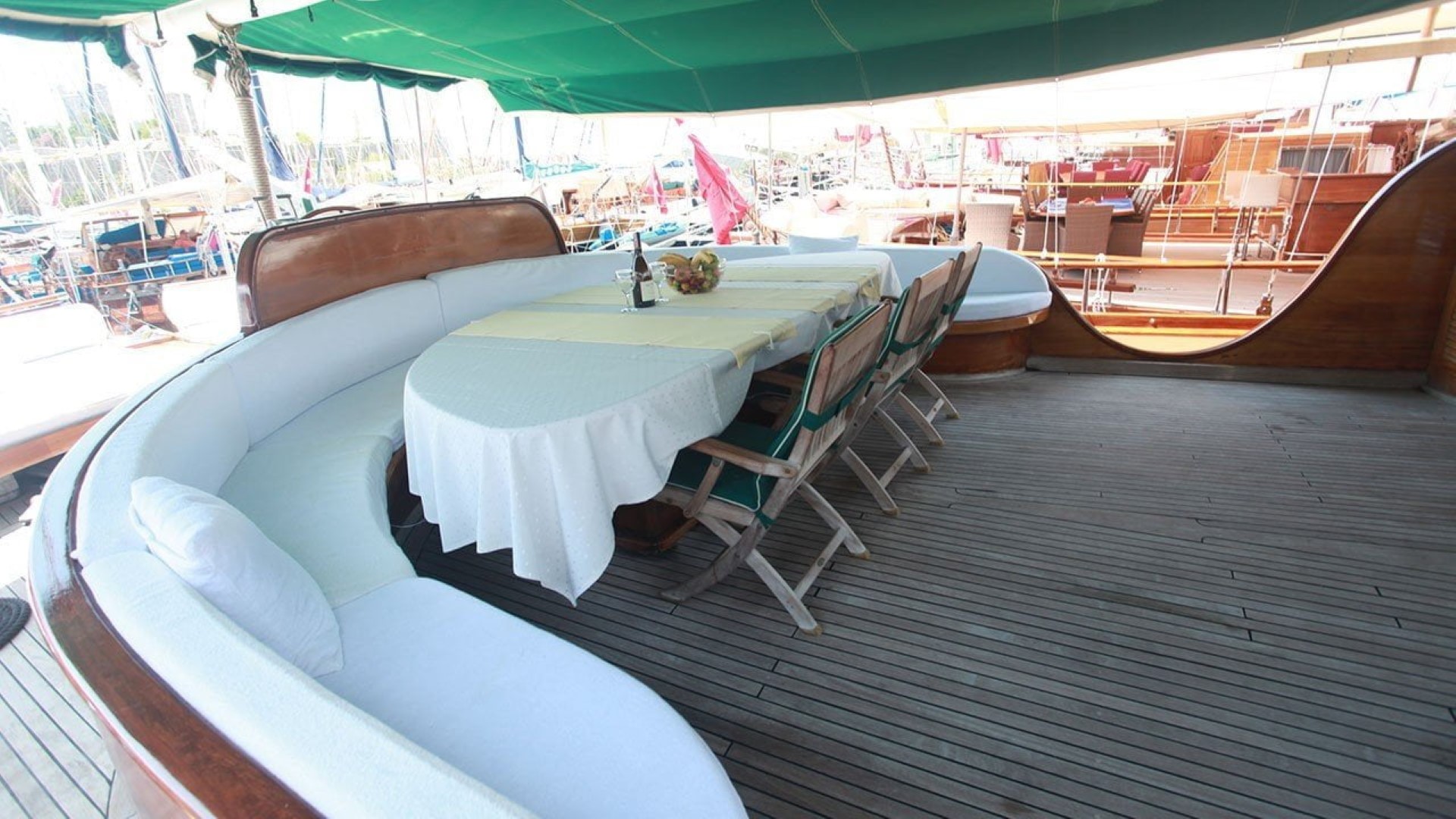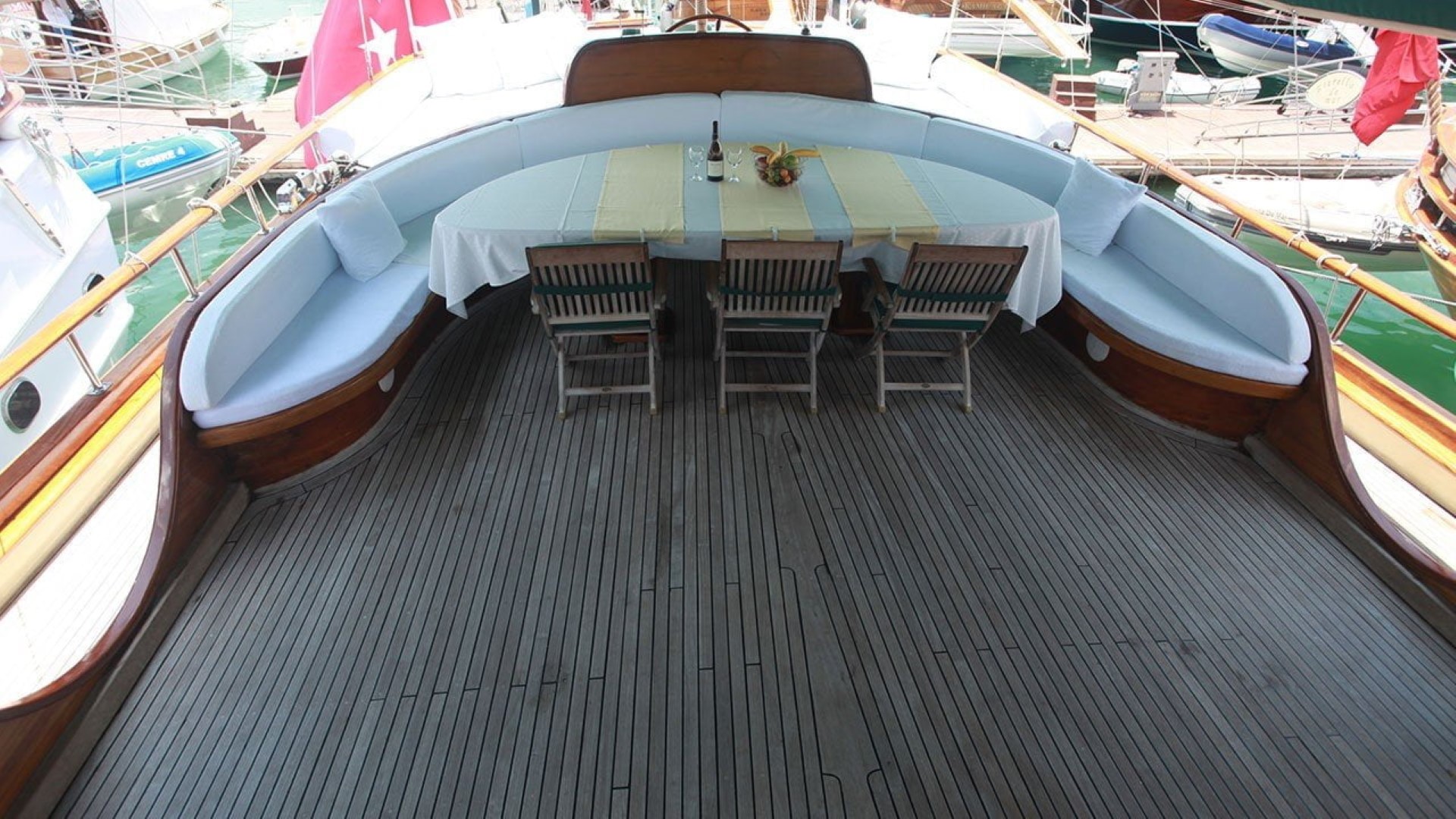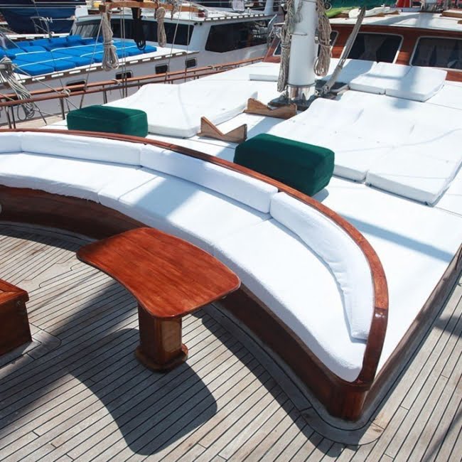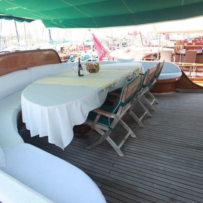 Güvertede geniş minderli oturma alanı, güneşlenme alanı ve güneşlenme minderleri yeterli sayıda mevcuttur.