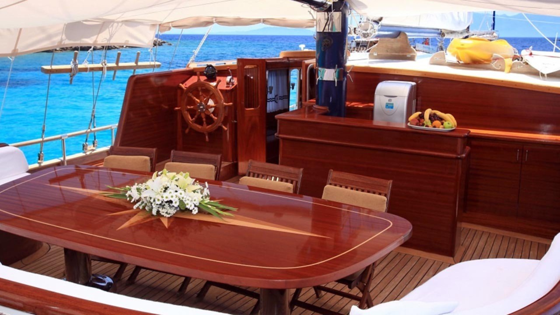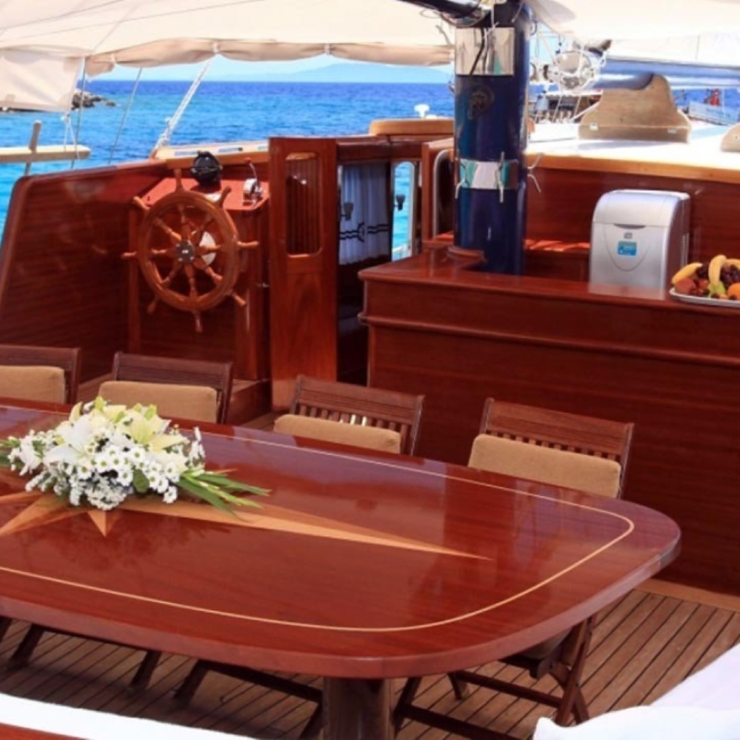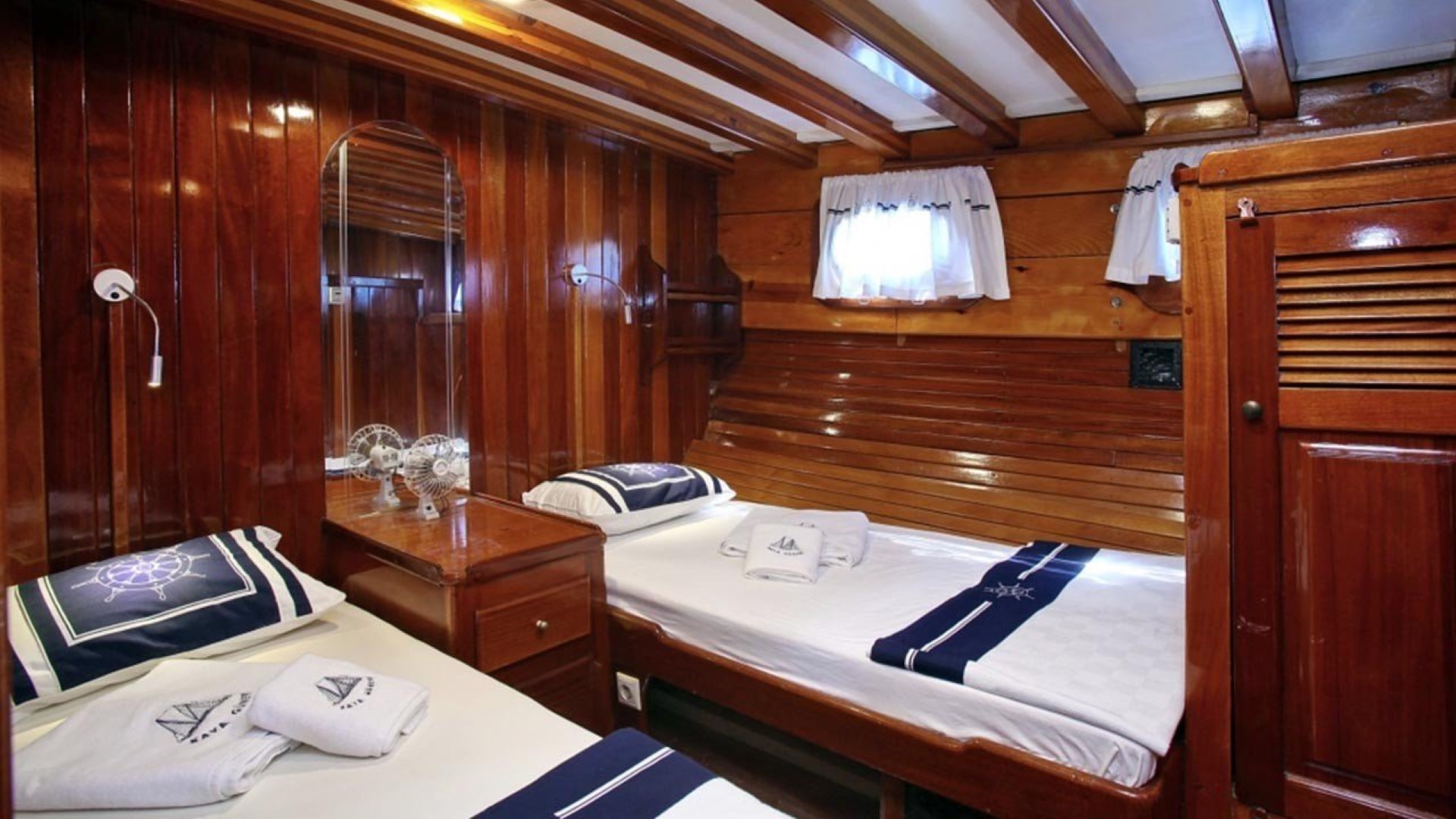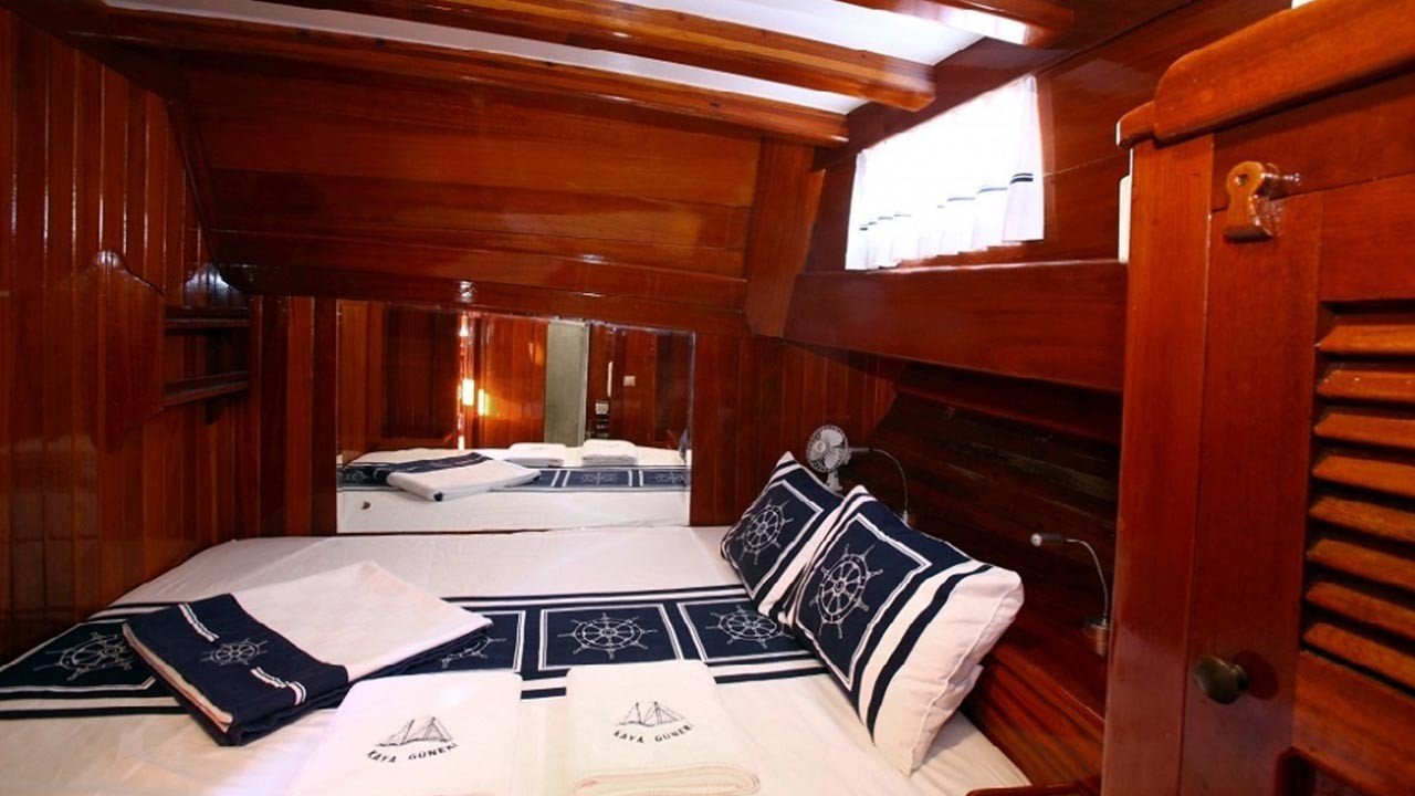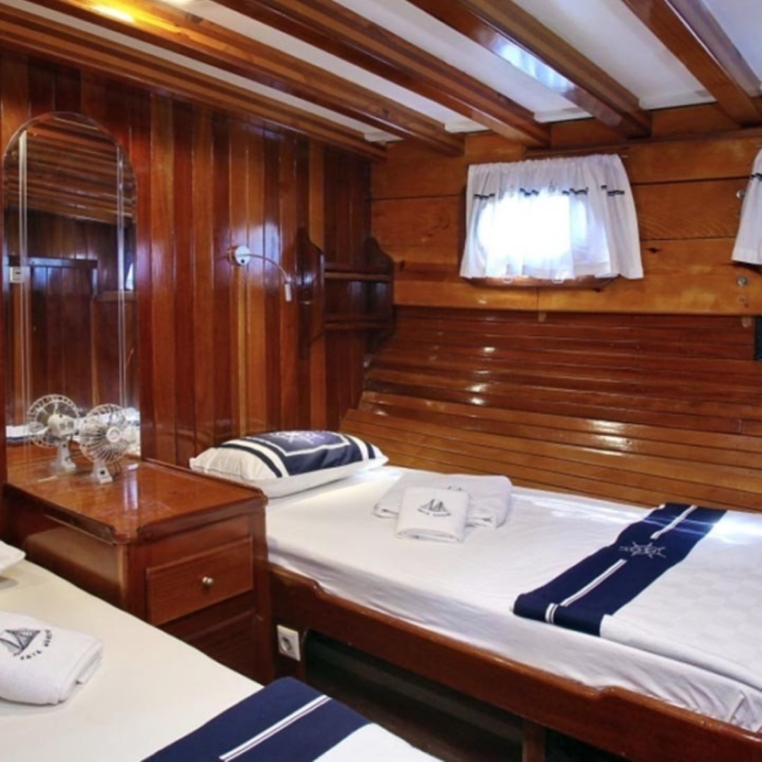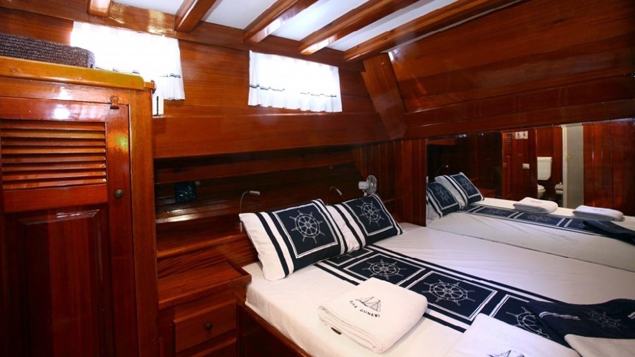 Kaya Güneri 1 guleti 1997 yılında yapılmış olup 2014 yılında modern şekilde tamamen yenilenmiştir. 26 m uzunluğunda olup 2 Double Kabin, 3 Tripple Kabin ve 2 Twin Kabin olmak üzere toplam 7 Kabinden oluşmaktadır. Kabinlerimiz geniş ve ferah olup tüm kabinlerde Duş Ünitesi, Wc ve Klima bulunmaktadır. Mürettebatın kendine ait yaşam alanı mevcuttur. Kıç güvertede geniş oturma minderleri ve yemek masası bulunmaktadır. Bu alanda tam donanımlı mutfağımızda hazırlanan yemekleri yiyebilirisiniz. Ön güvertede bulunan güneşlenme alanı ve güneşlenme minderleri yeterli miktarda bulunmaktadır. Guletimizin kabinleri, iç ve dış güverteleri modern bir şekilde dizayn edilmiştir. Her gün özenle ve titizlikle hazırlanan profesyonel ekibimiz sizlere yardımcı oluyor. Gulet Kaya Güneri 1 ekibi olarak mavi yolculuğunuzda şimdiden iyi tatiller dileriz.