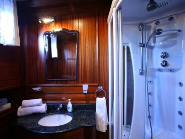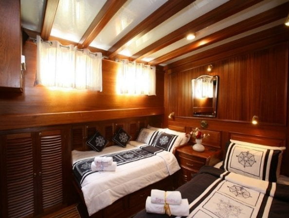 Zevkle dizayn edilmiş guletimizde siz değerli misafirlerimizin konforu için; TV, DVD, Müzik Sistemi, Klima, Duş ve Wc tüm kabinlerinde mevcuttur. Kullanım alanlarıyla ferah ve geniş olan lüks guletimizin güvertesinde yeterli miktarda güneşlenme alanı ve güneşlenme minderi mevcuttur. Aynı zamanda tam donanımlı mutfağımızda büyük bir titizlikle hazırlanan yemekleri güvertede bulunan yemek masasında tadabilirsiniz. Mavi yolculuğunuzda ihtiyacınız olan bütün imkanlar profesyonel ekibimiz tarafından sağlanmaktadır. İyi tatiller..