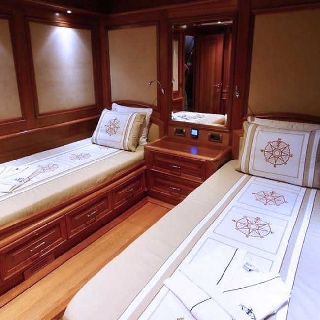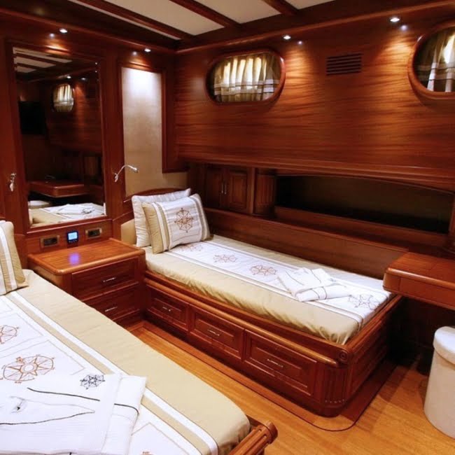 Yat mürettebatı günlük; temizlik, bakım, servis, yeme-içme gibi tekne içi faaliyetlerin organizasyonlarını tamamlayıp mahremiyetinize engel olmamak adına kendilerine ait yaşam alanlarına ve kamaralarına çekilmektedir. Profesyonel ekibimizle mavi yolculuğunuzun en güzel şekilde geçmesini temenni ediyoruz ve sunuyoruz. İyi tatiller..