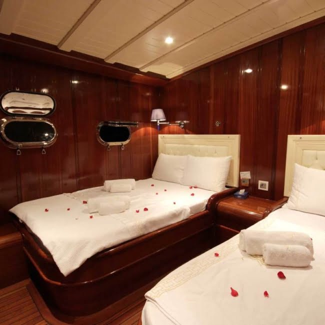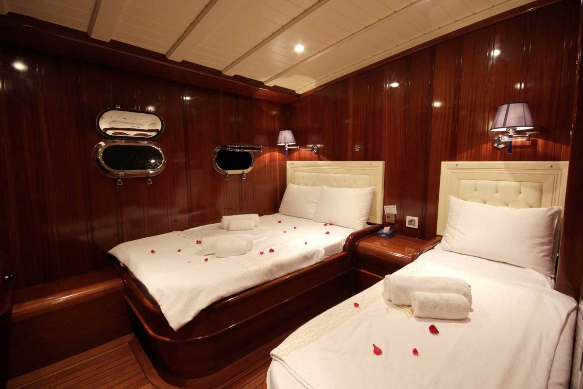 Gulet Kaya Güneri Plus 35 metre uzunluğunda, lüks sınıf bir yatımızdır. 2 Master, 2 Double ve 2 Triple kabin olmak üzere toplam 6 kabinde 12 misafir ağırlayabilmektedir. Kaya Güneri Plus yatımızın her kabininde duş ve tuvaletin yanı sıra klima, TV ve müzik sistemi de bulunmaktadır.