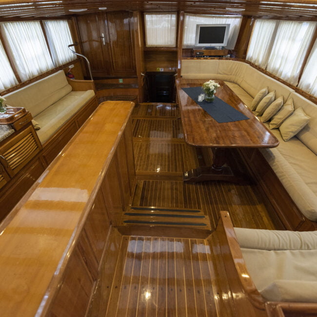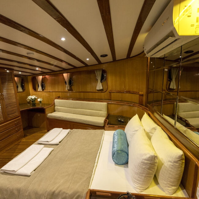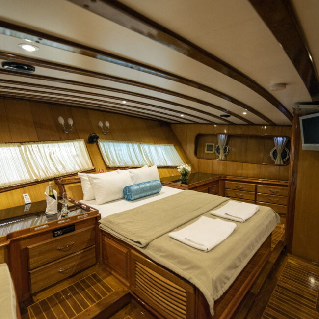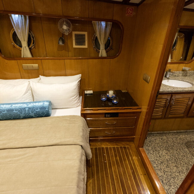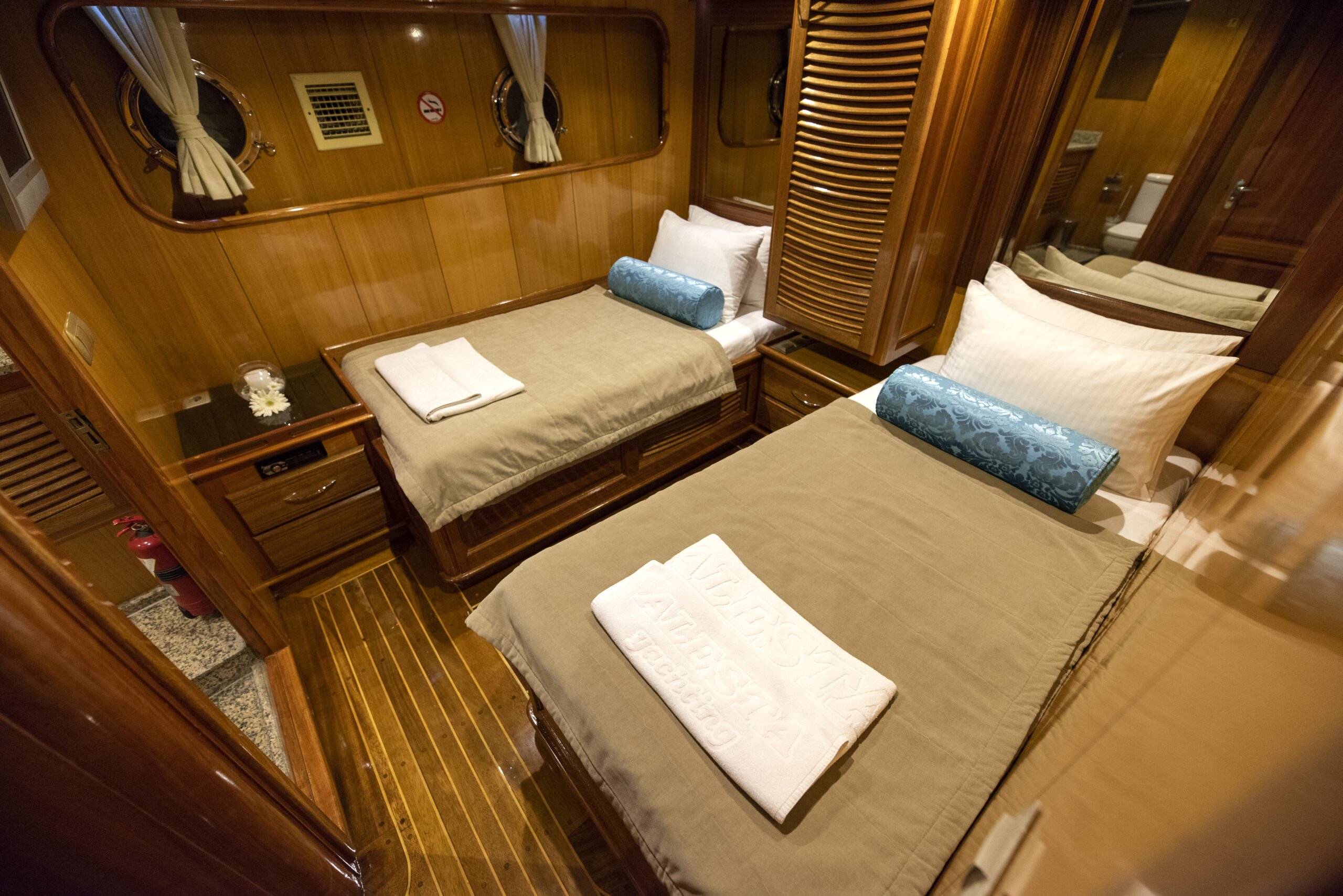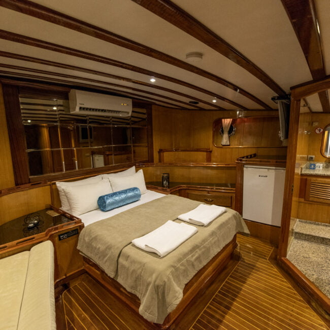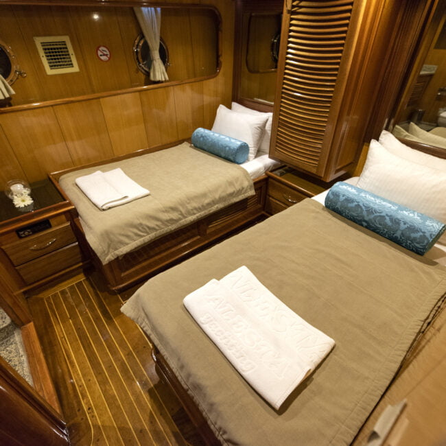 2 master, 2 double ve 2 twin kabini mevcuttur. 28 metre uzunluğunda, genişliği ise 7.20 metredir. 2006 yılında yapılan teknenin her yıl bakımları düzenli olarak
