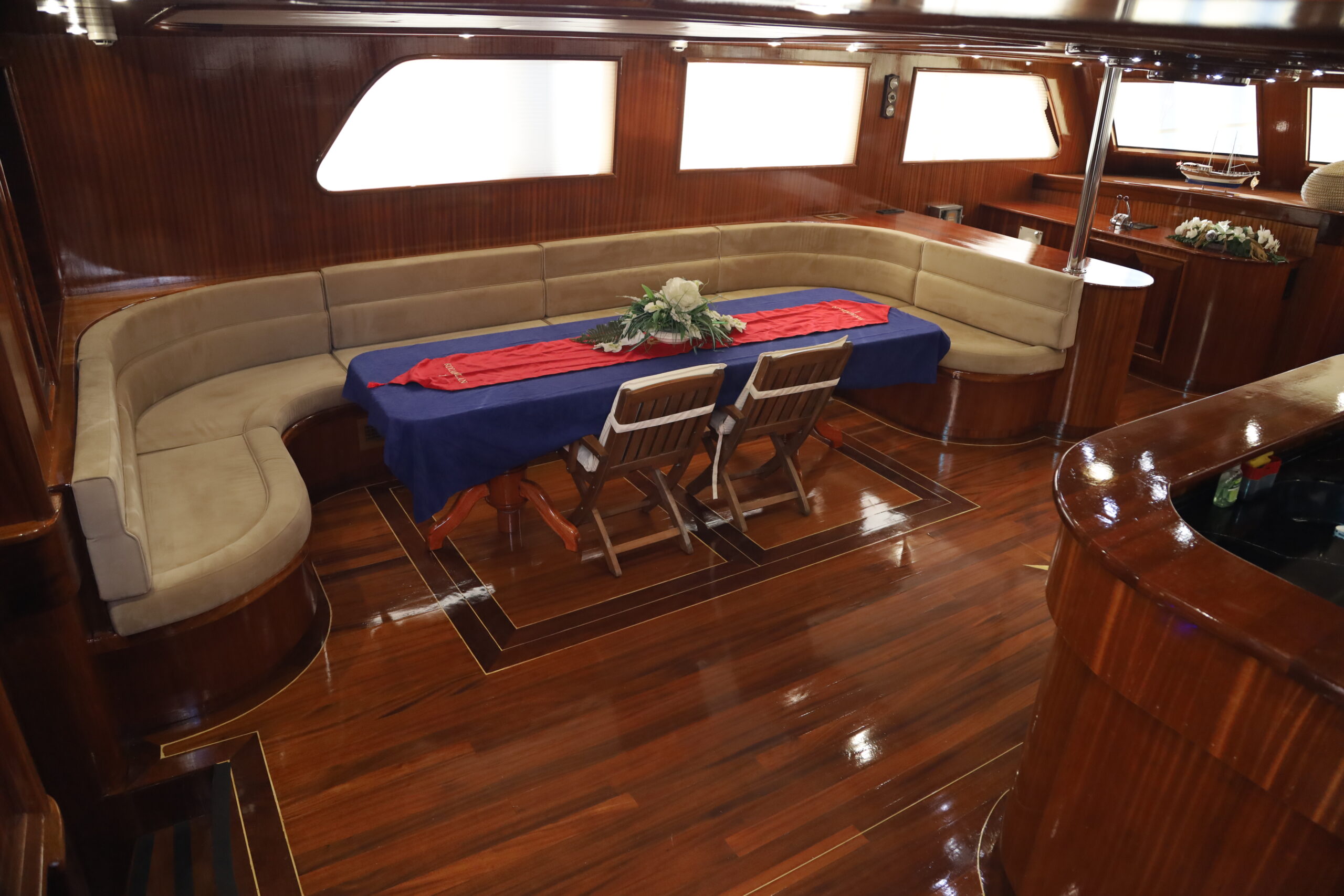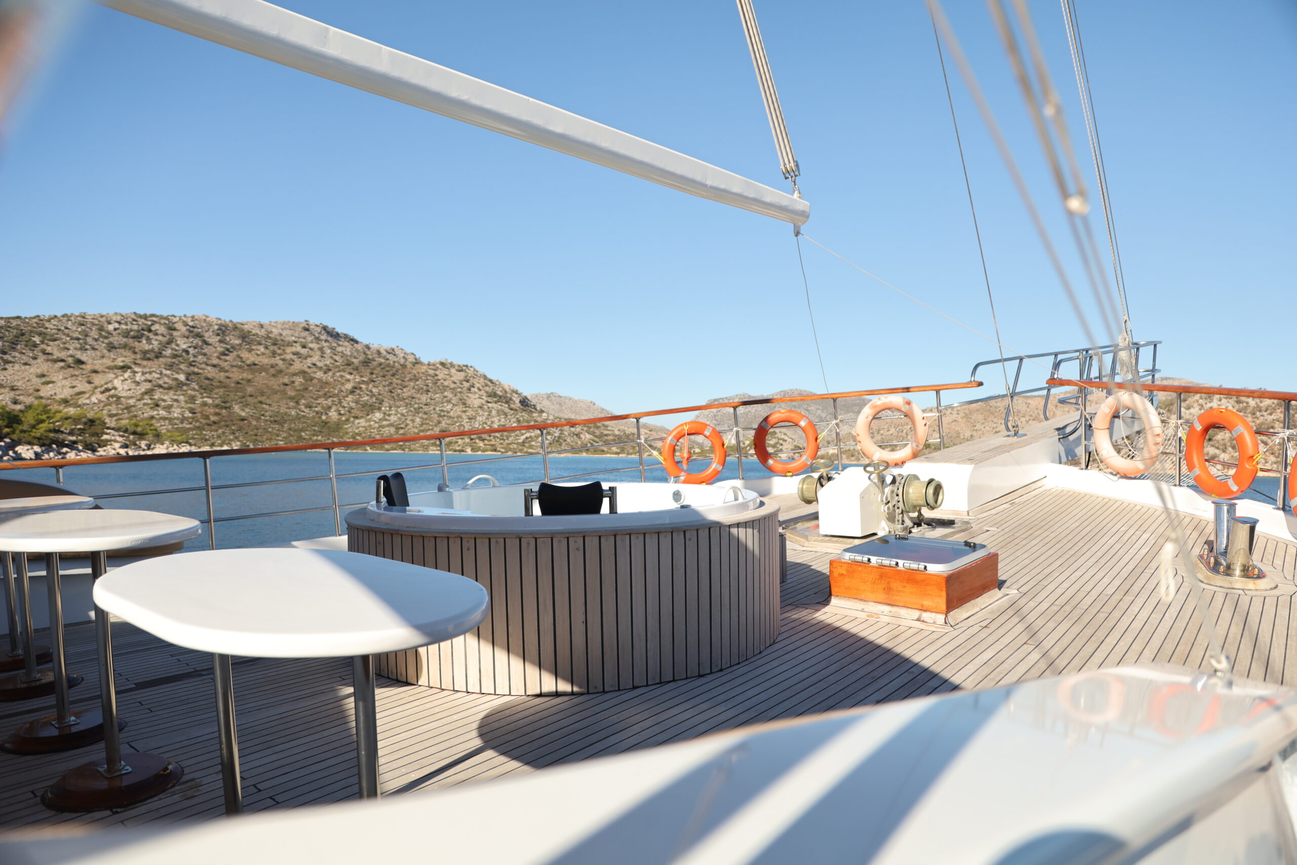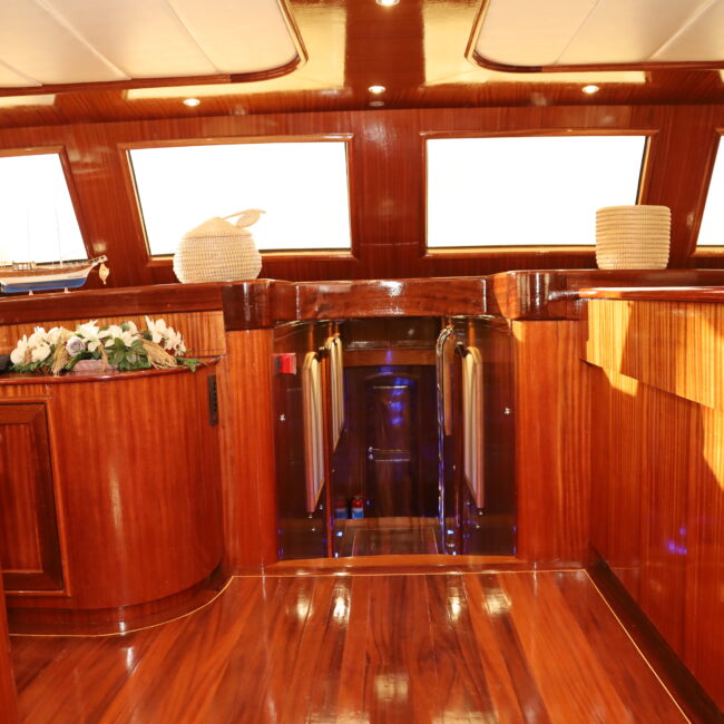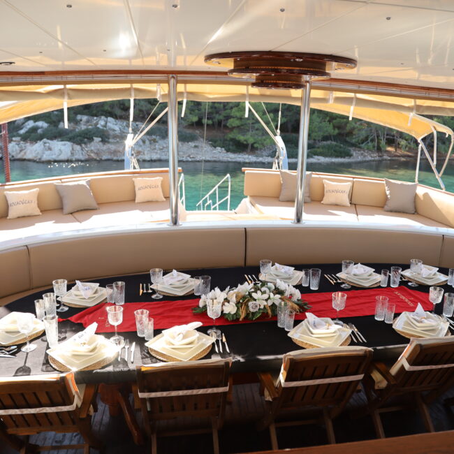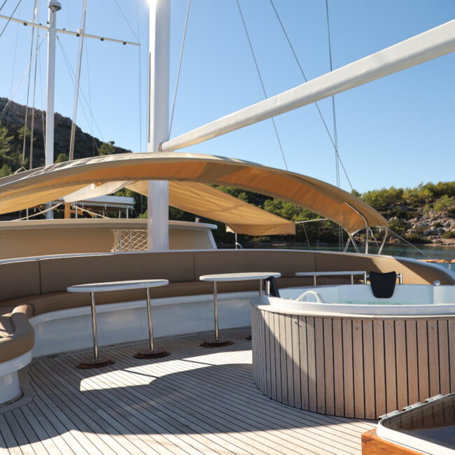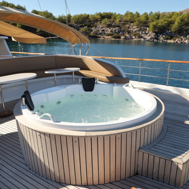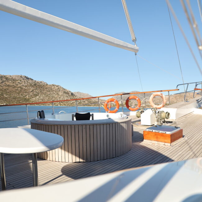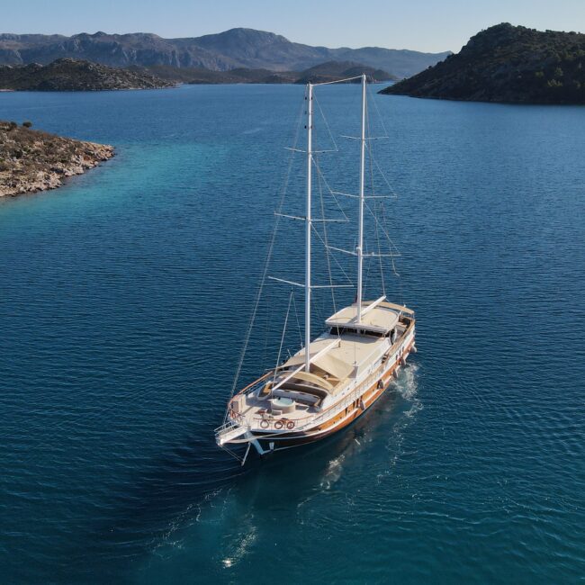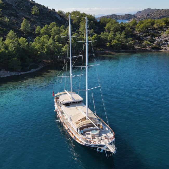 kapasitesi 12 kişidir. Uzunluğu 32 metre, genişliği ise 8.80 metredir. Ses sistemi, wi-fi ve on güvertede jakuzi bulunmaktadır. Türk bayrağıyla mavi tur hizmeti veren