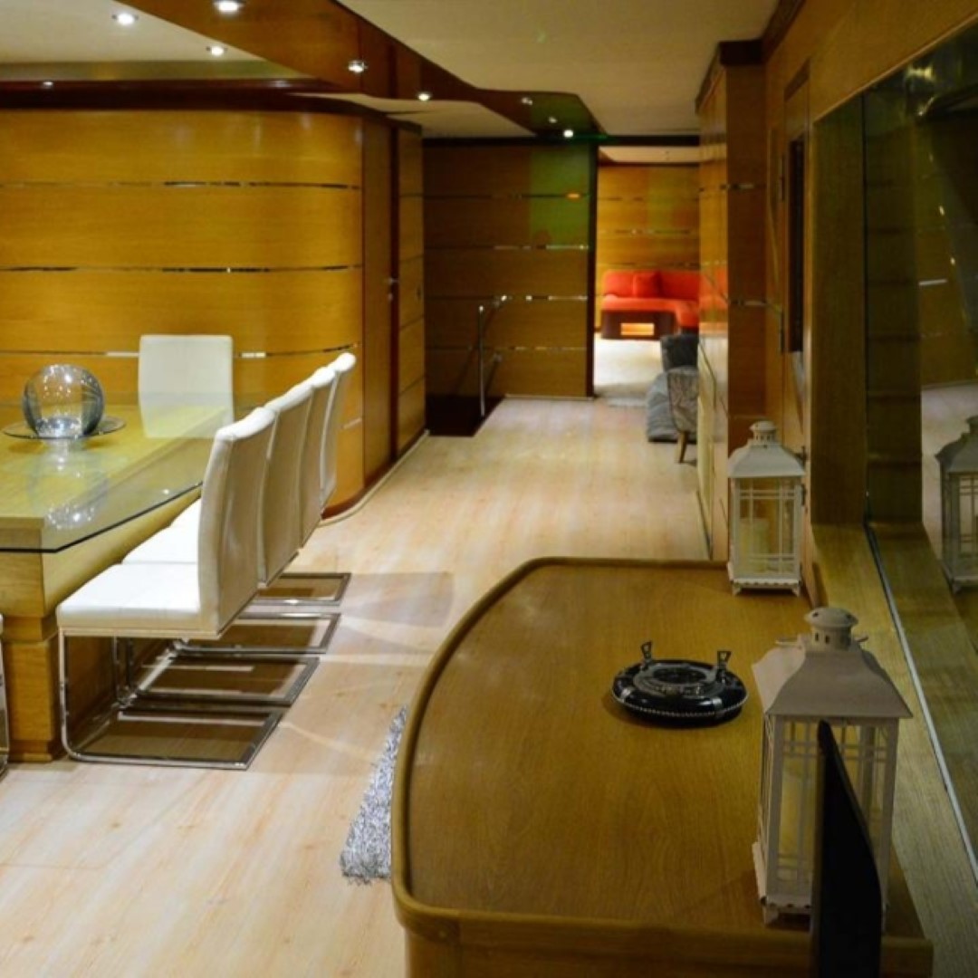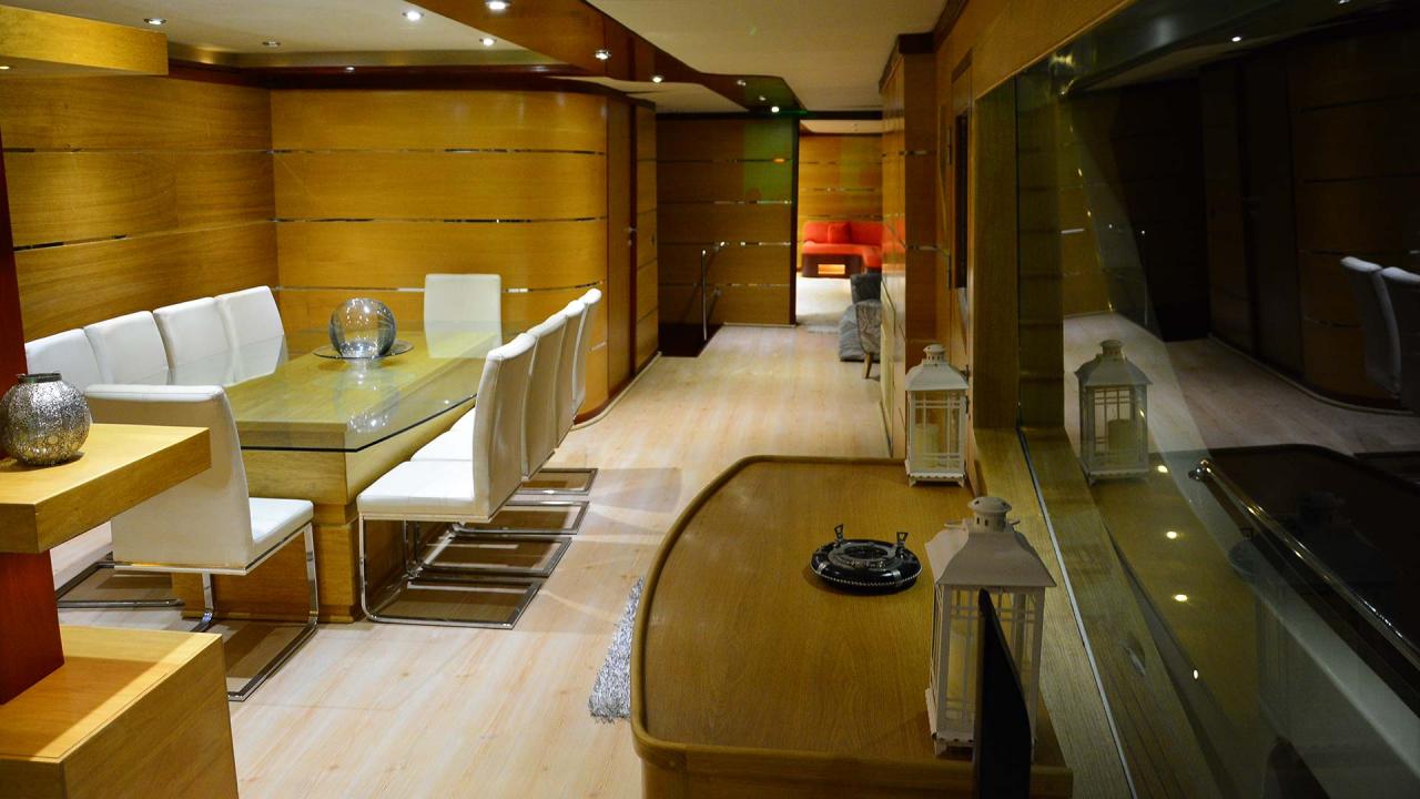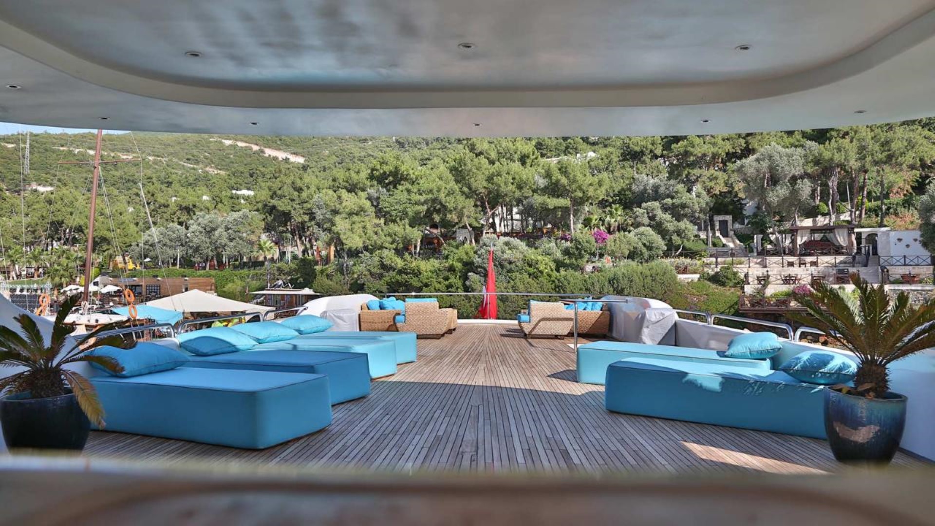 Motoryat Kuzey T, kıç güvertede geniş minderli bir oturma alanı, yemek masası ve yemek alanı bulunmaktadır. Salonda ise ayrı bir yemek masası olup yemekleriniz tam donanımlı ayrı bir mutfakta hazırlanmaktadır ayrıca salon bölümünde siz misafirlerimizin eğlenceli, keyifli ve hoş vakit geçirebilmesi için TV, müzik sistemi ve DVD player mevcuttur. Tüm misafirlerimize yeterli güneşlenme alanları ve güneş minderleri mevcuttur.Motoryat Kuzey T,eşsiz manzaraya karşı güneşlenip unutulmaz anılar yaşayabilmenizi taahhüt eder.