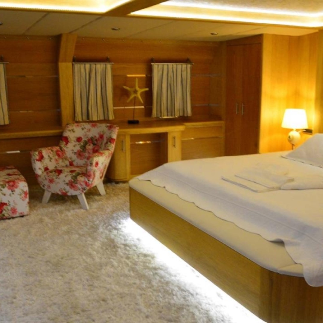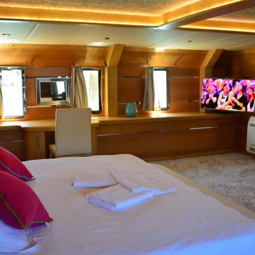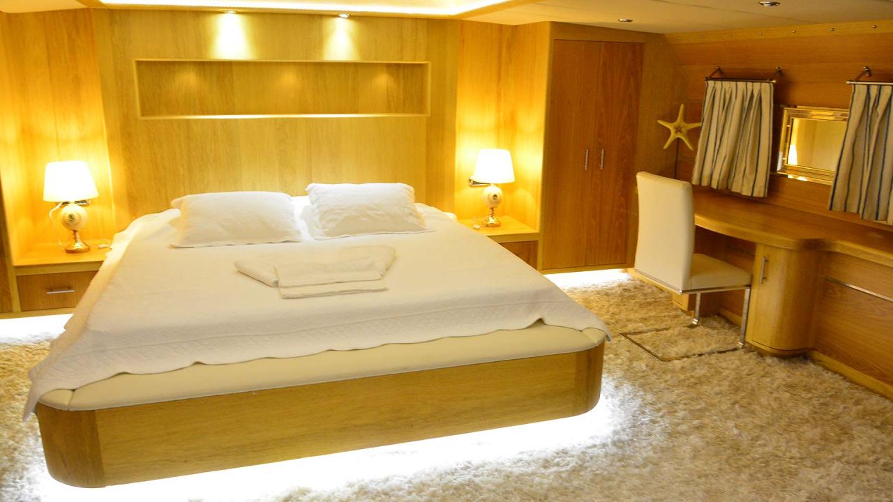 Motoryat Kuzey T, 47.50 metre uzunluğunda muhteşem yatımız 2012 yılında inşa edilen mega yattır. Motoryat Kuzey T oldukça geniş konforlu yaşam alanı sunmaktadır.Motoryat Kuzey T kabinlerimiz son derece şık ve lüks olan bu yat, harika tasarımıyla dekore edilmiş kabinlere ev sahipliği yapmaktadır.Motoryat Kuzey T kabinlerimiz 3 Double kabin 1 Master kabin 1 Twin kabin klimalı kabinlerde 10 misafir için konaklama imkanı sunmaktadır.Motoryat Kuzey T her kabinde ayrı WC ve duş ünitesi bulunmaktadır.