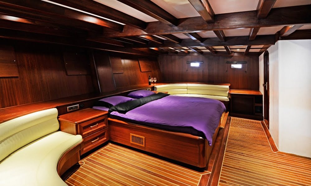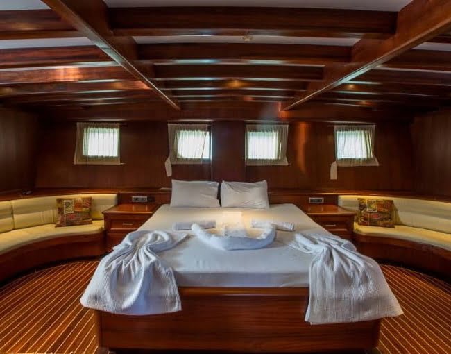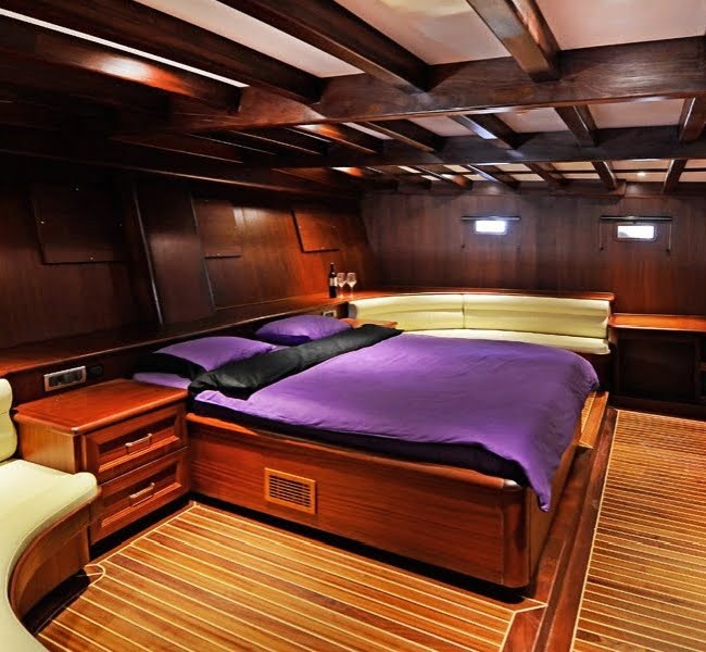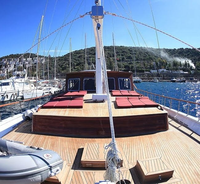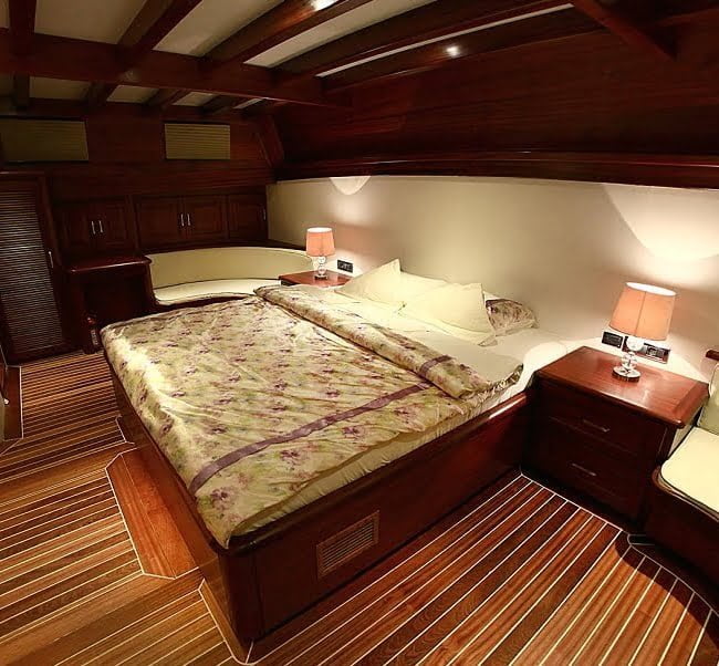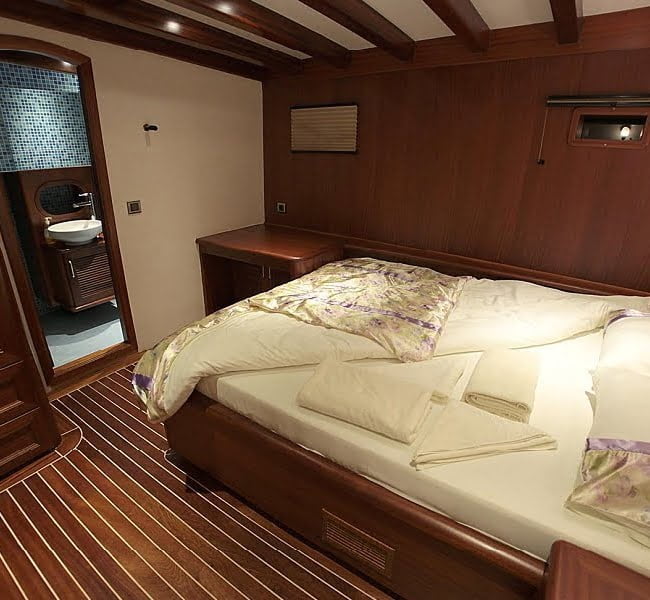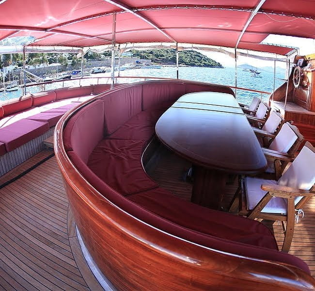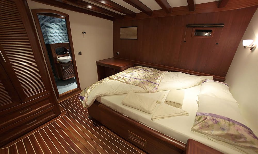 Her kabinde duş,tuvalet ve klima bulunan teknemizin ön güvertesinde güneşlenme alanları ve arka güvertsinde ise yemek masaları ve dinlenme alanları yer almaktadır.