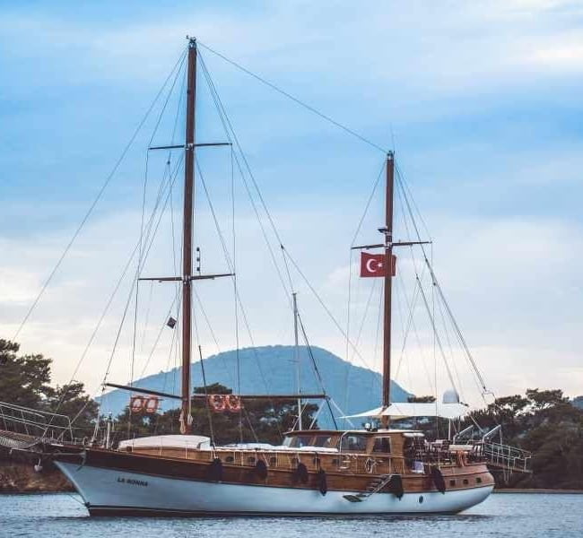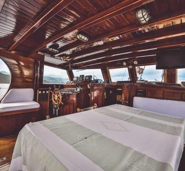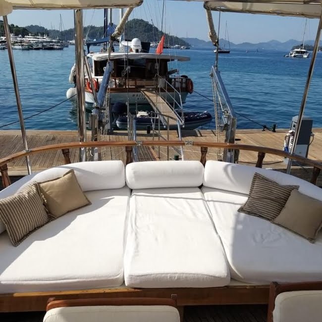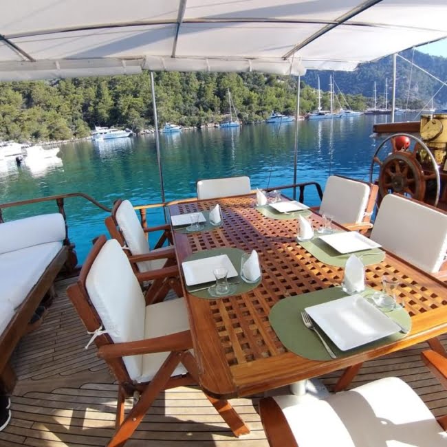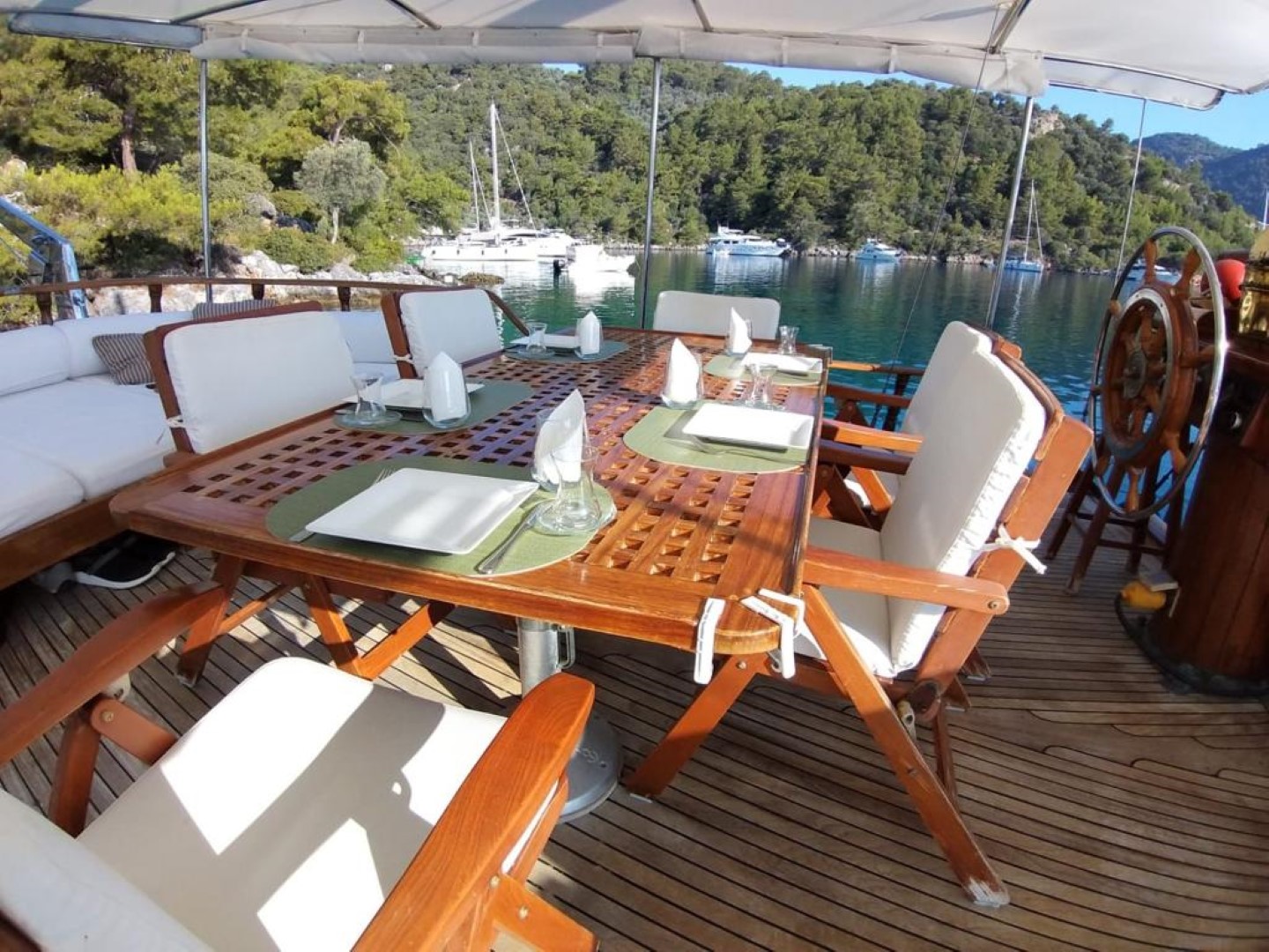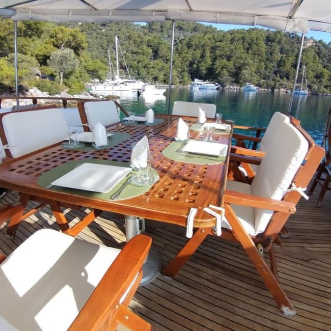 2009 yılında denize indirilmiştir. Standart ve 22 metre uzunluğundaki teknemizde, deneyimli ve güler yüzlü 3 kişilik mürettebatımız misafir memnuniyeti odaklı hizmet vermektedir. Geniş ve konforlu yaşam alanlarıyla dikkat çeken teknemizde, 8 kişiye kadar olan nezih gruplarınıza mavi yolculuk hizmeti sunmaktayız.