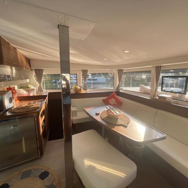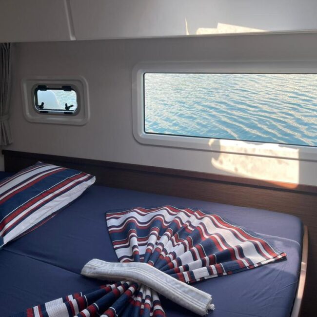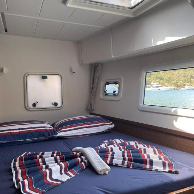 Katamaran Lagoon 42: 4 adet kullanımı rahat ve konforlu kabini ve her kabinde duş/wc bulunan tekne,üst güverte yaşam alanlarının çokluğu ile de size ayrı bir seyir
