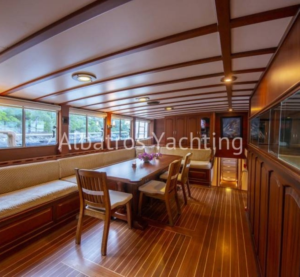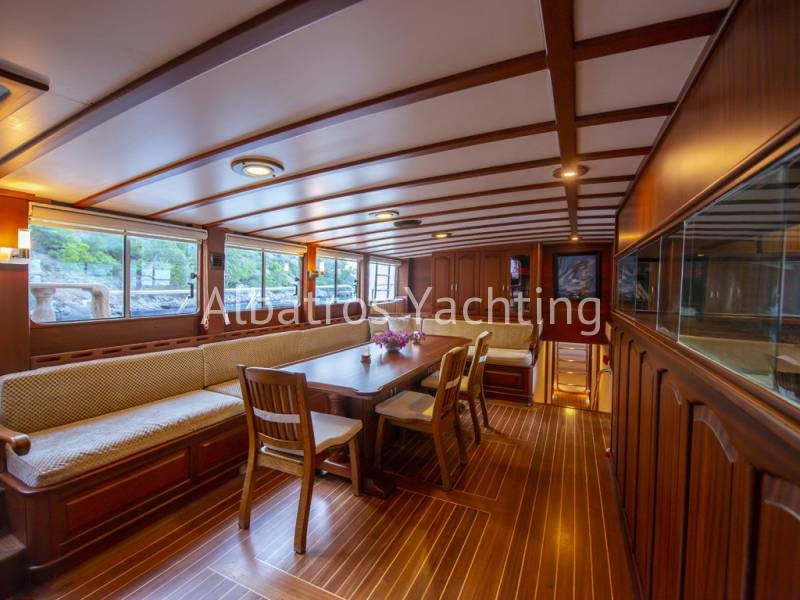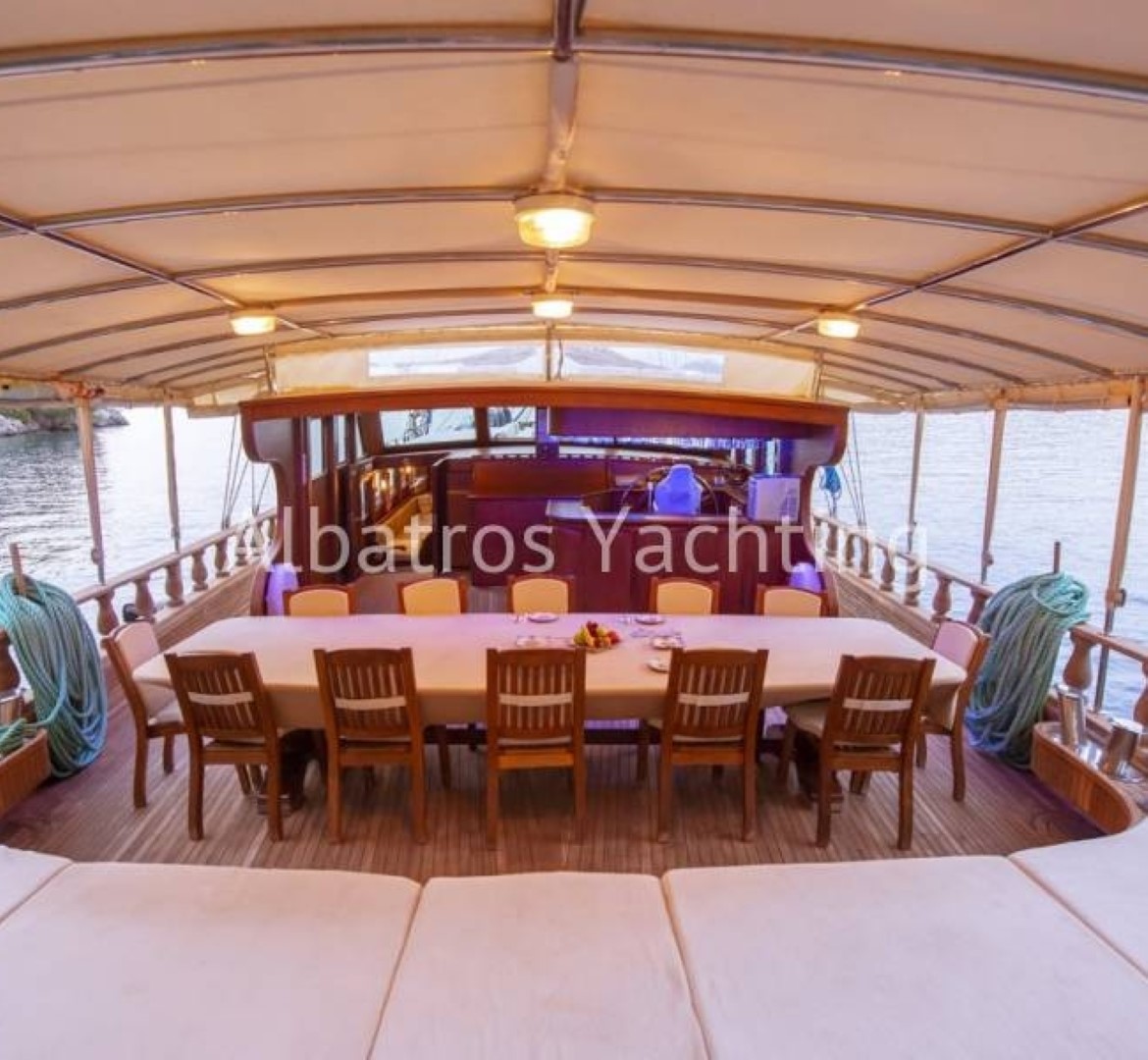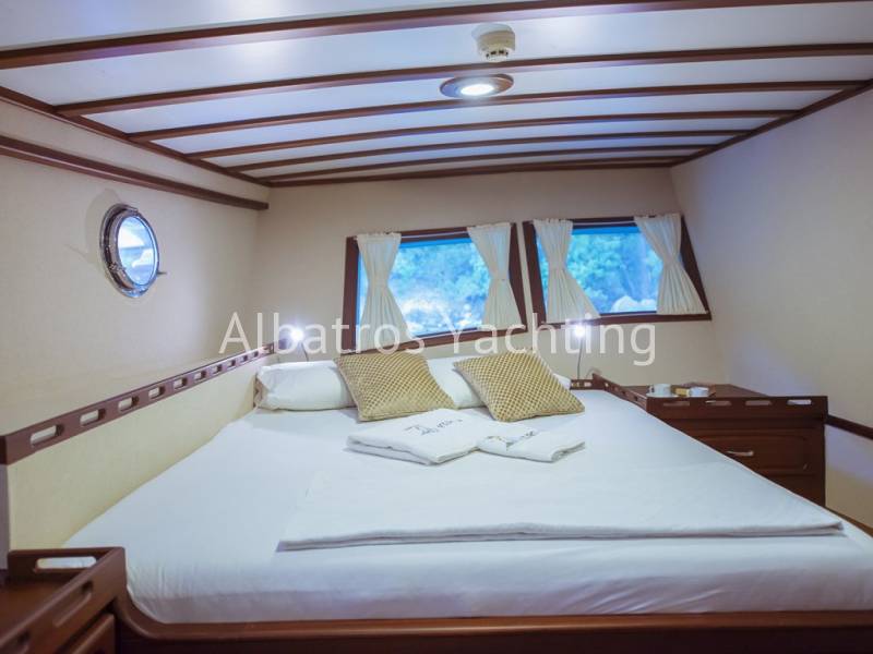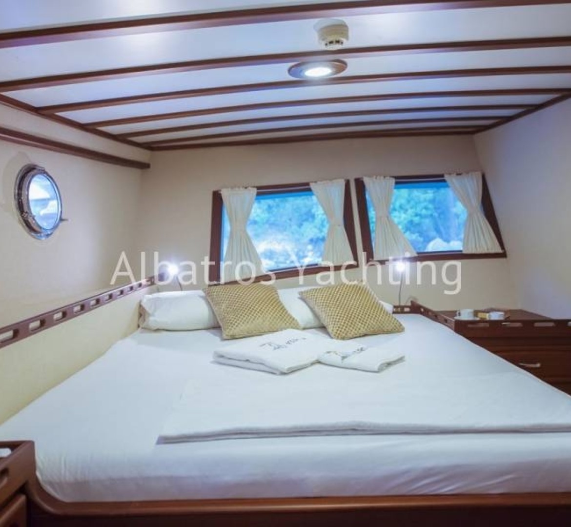 Gulet Larin Su, Türkiye’deki yat tatilleriniz için Fethiye veya Marmaris’den temin edilebilen geleneksel bir ahşap gulettir. 32 metre uzunluğunda olan guletimiz 5 çift kişilik ve 3 ayrı yataklı olmak üzere toplam 8 kabinde 16 misafir ağırlayabildiğinden, daha büyük aile ve arkadaş grupları için idealdir. Her kabinde klima, duş ve ev tarzı tuvalet içeren özel banyo bulunmaktadır. Şık salon, öğle güneşinin sıcaklığından mükemmel bir sığınaktır. Bir kitapla rahatlayın, barda serinletici bir içeceğin tadını çıkarın, TV izleyin veya müzik dinleyin.